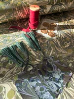 - 5 metallic hand marbled and handmade gift tags with silky emerald green tassels