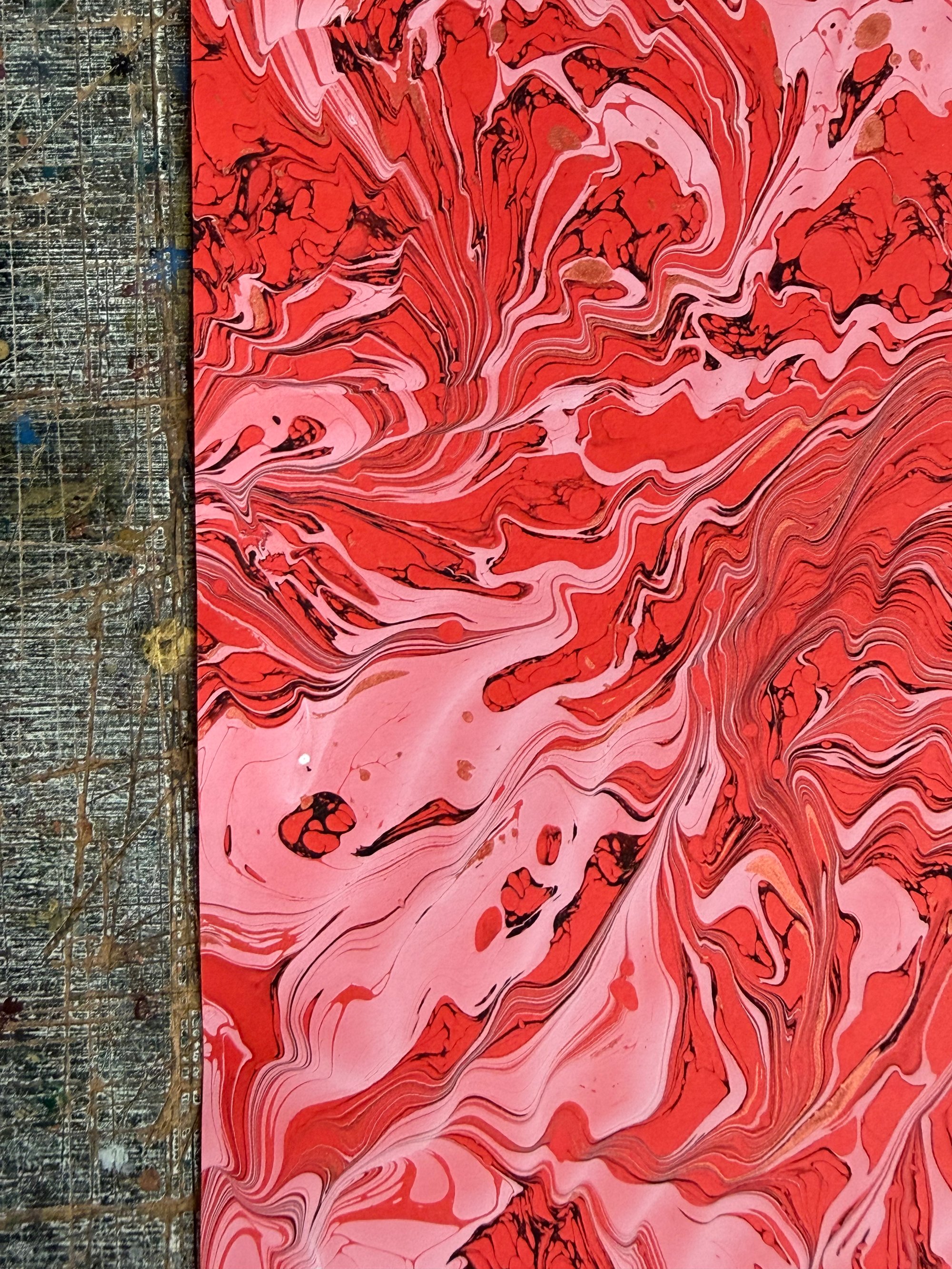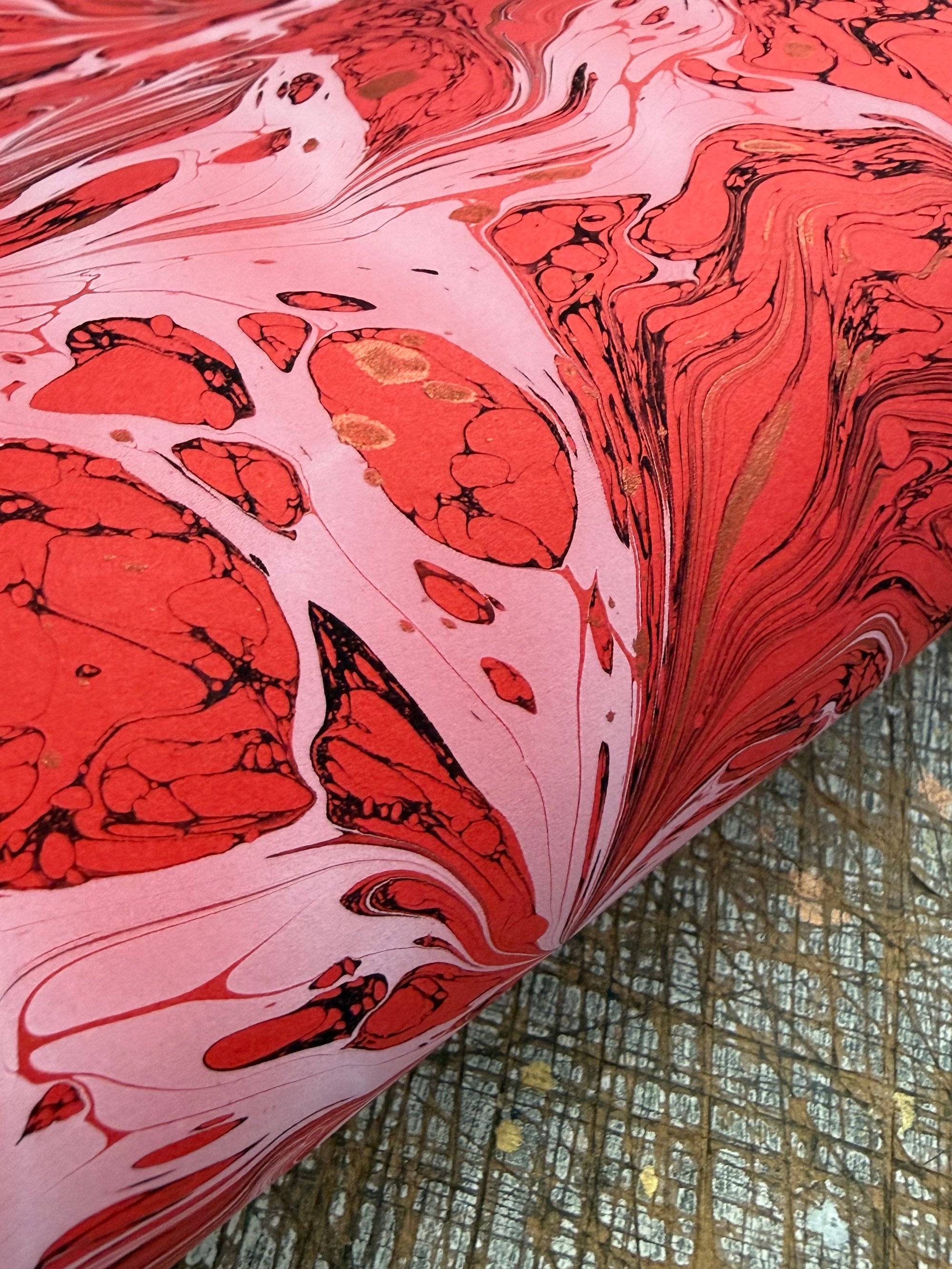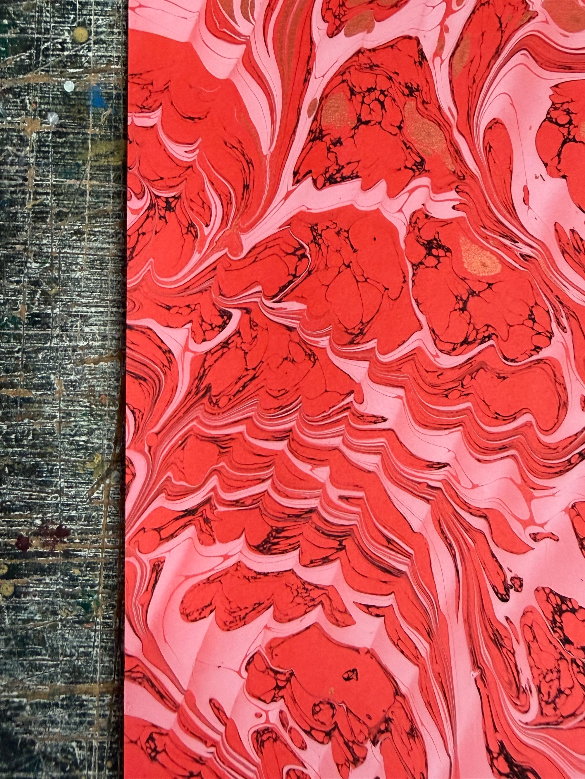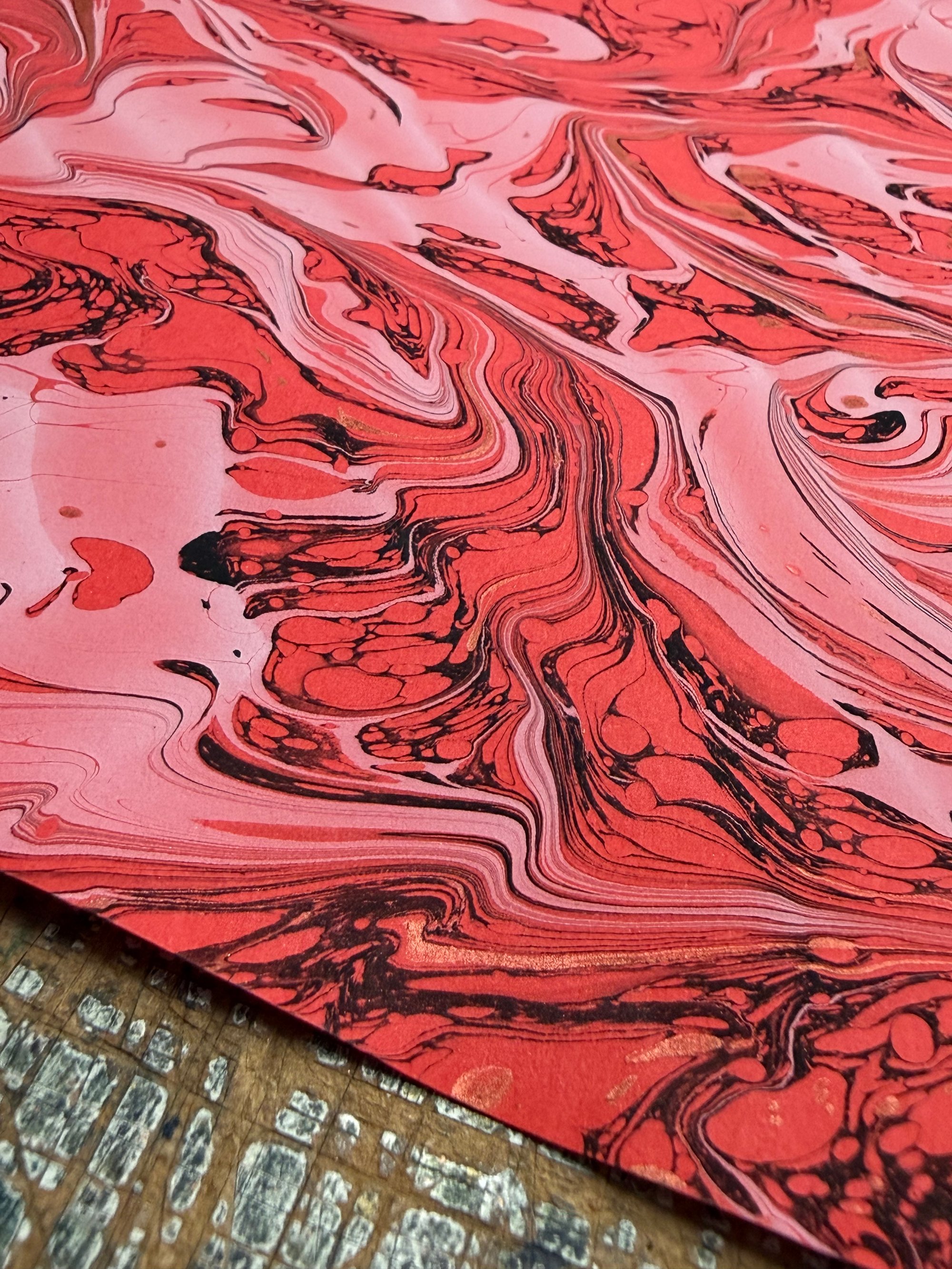 One of a kind hand marbled paper 'Crimson Wave' SHORT GRAIN