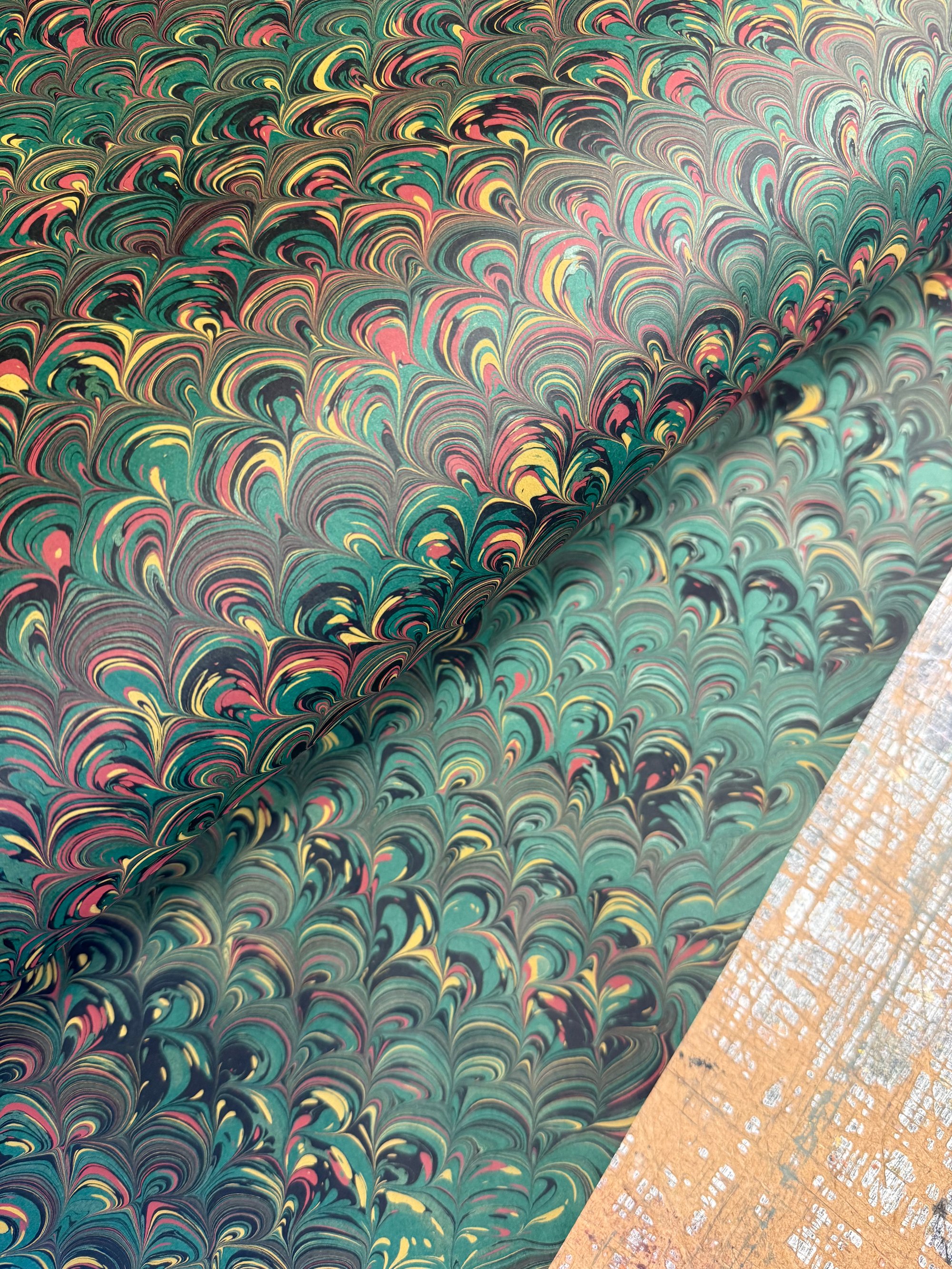 Green Small Peacock Hand Marbled Papers // Project 'Overs'