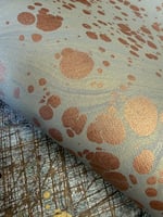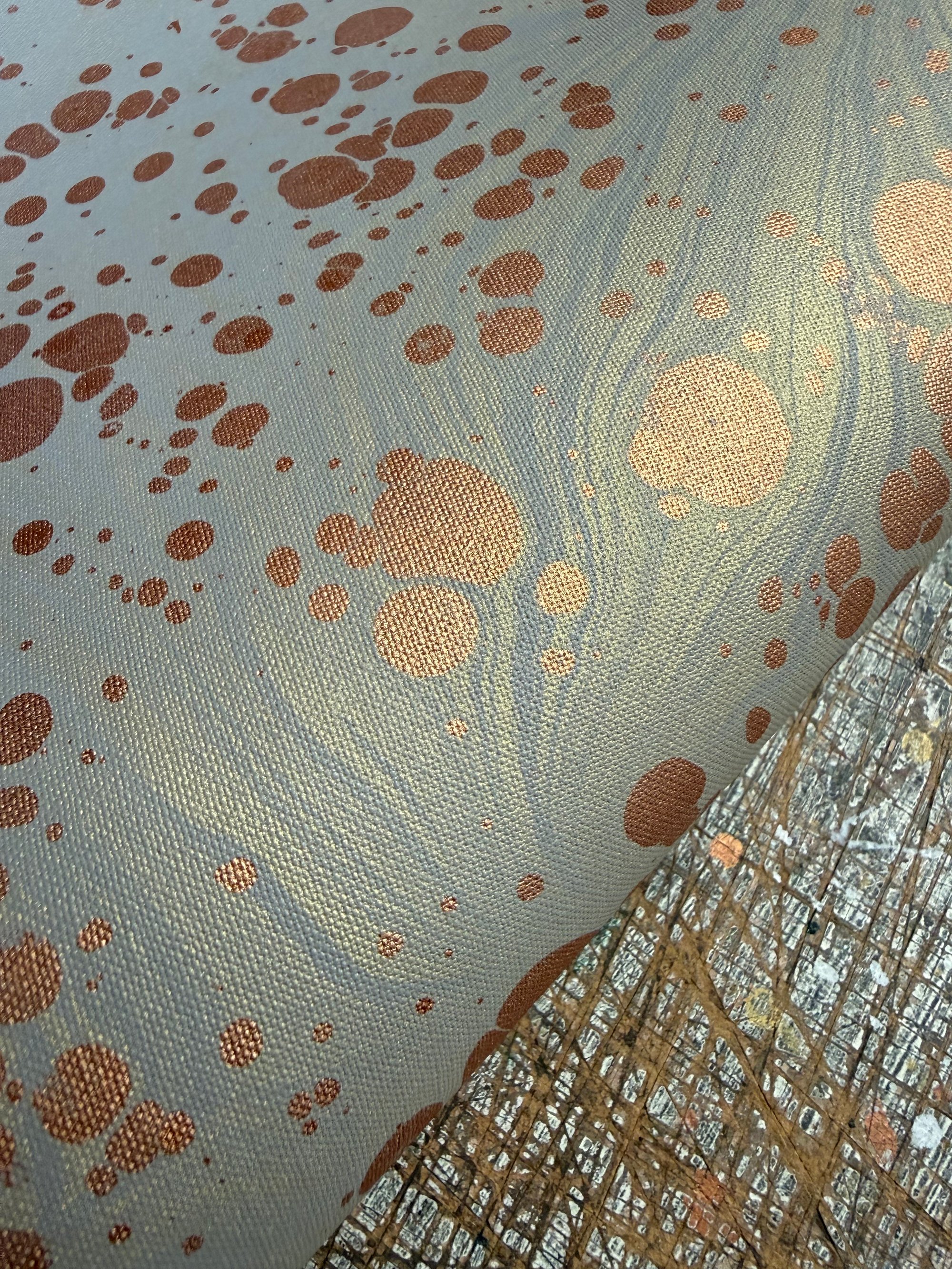 The fabric is not cut perfectly square edged and there may be a salvage edge which has also been marbled.