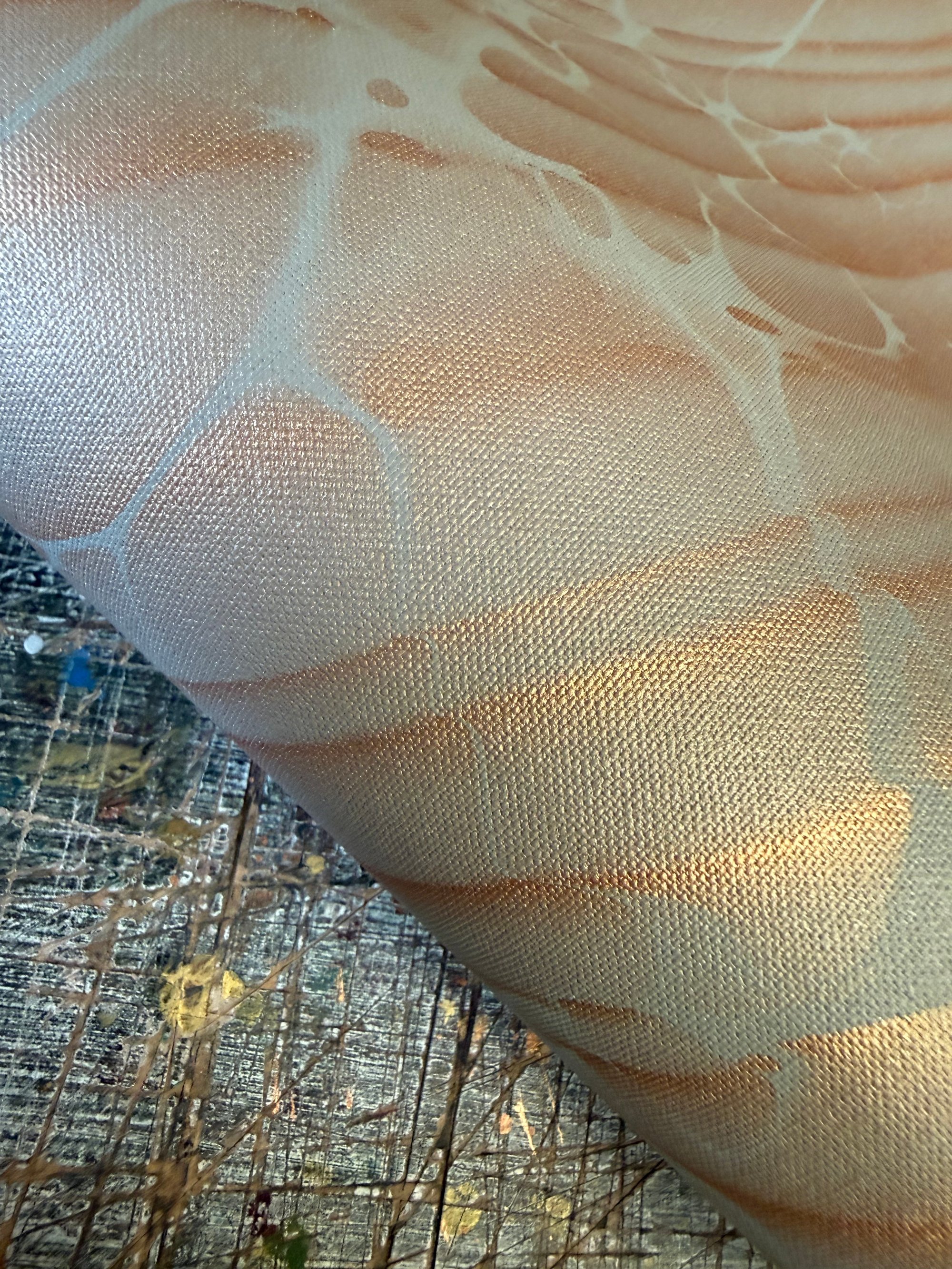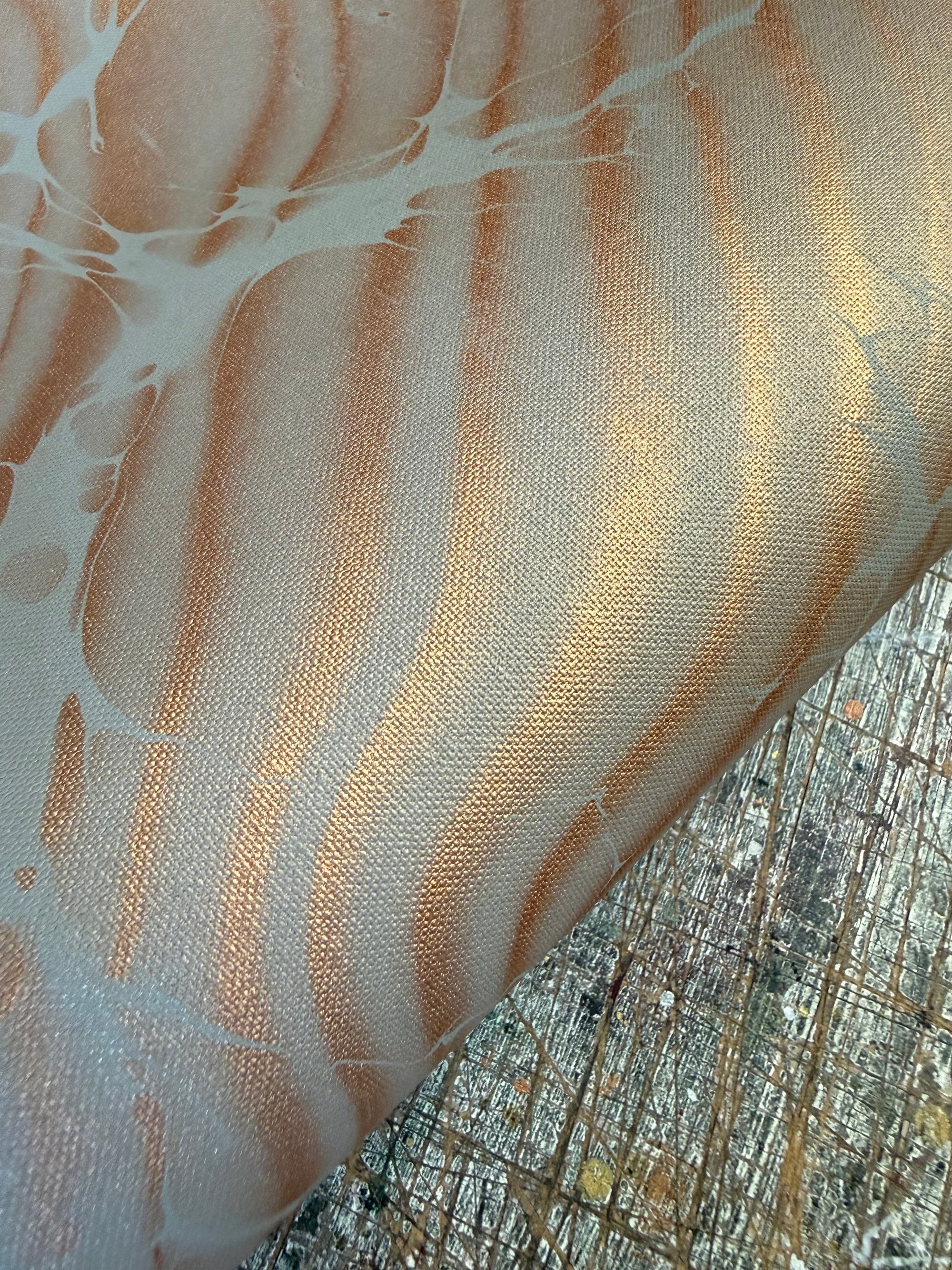 The fabric is not cut perfectly square edged and there may be a salvage edge which has also been marbled.