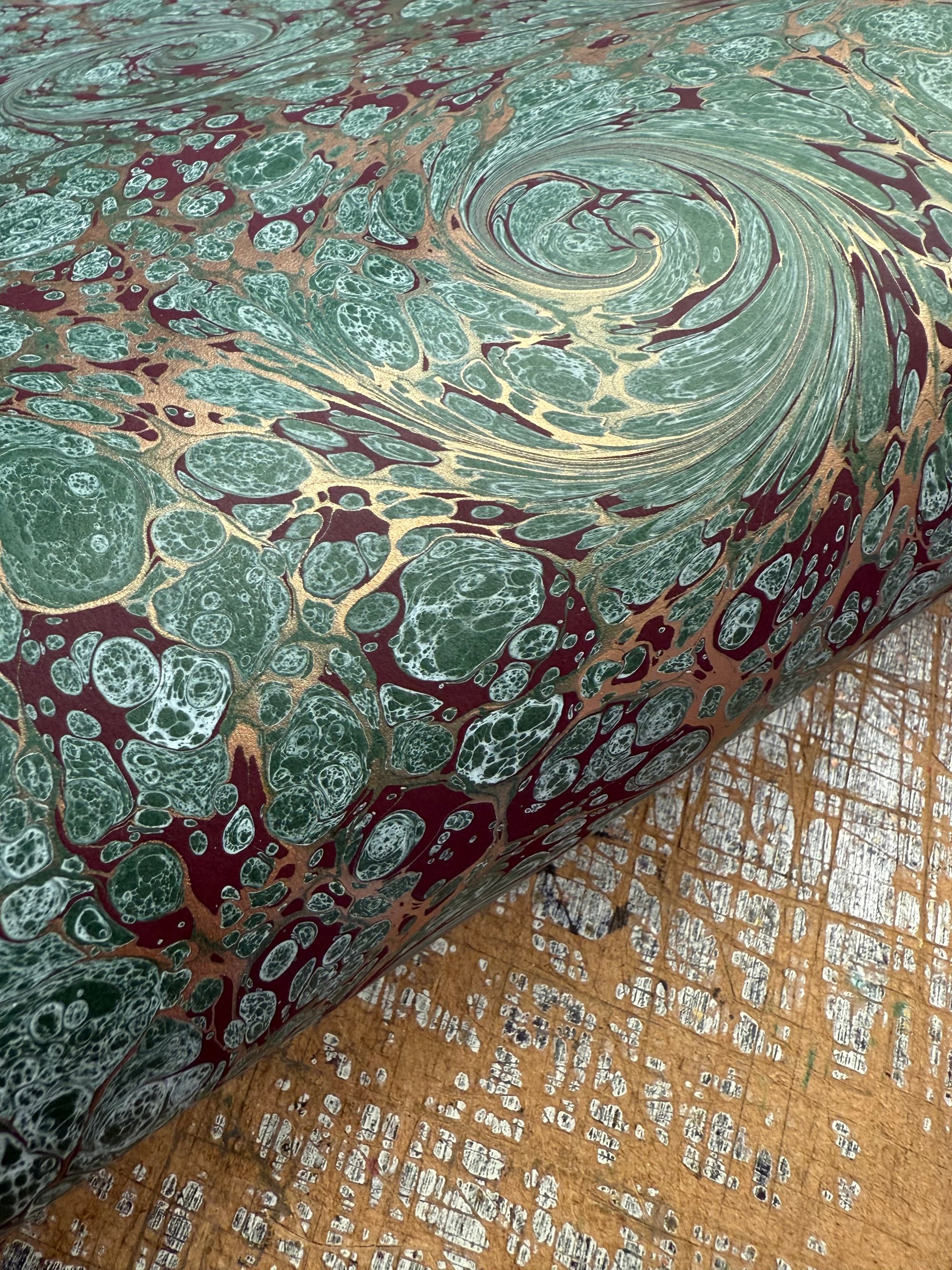 Hand Marbled one-of-a-kind 'Verdigris Swirl'