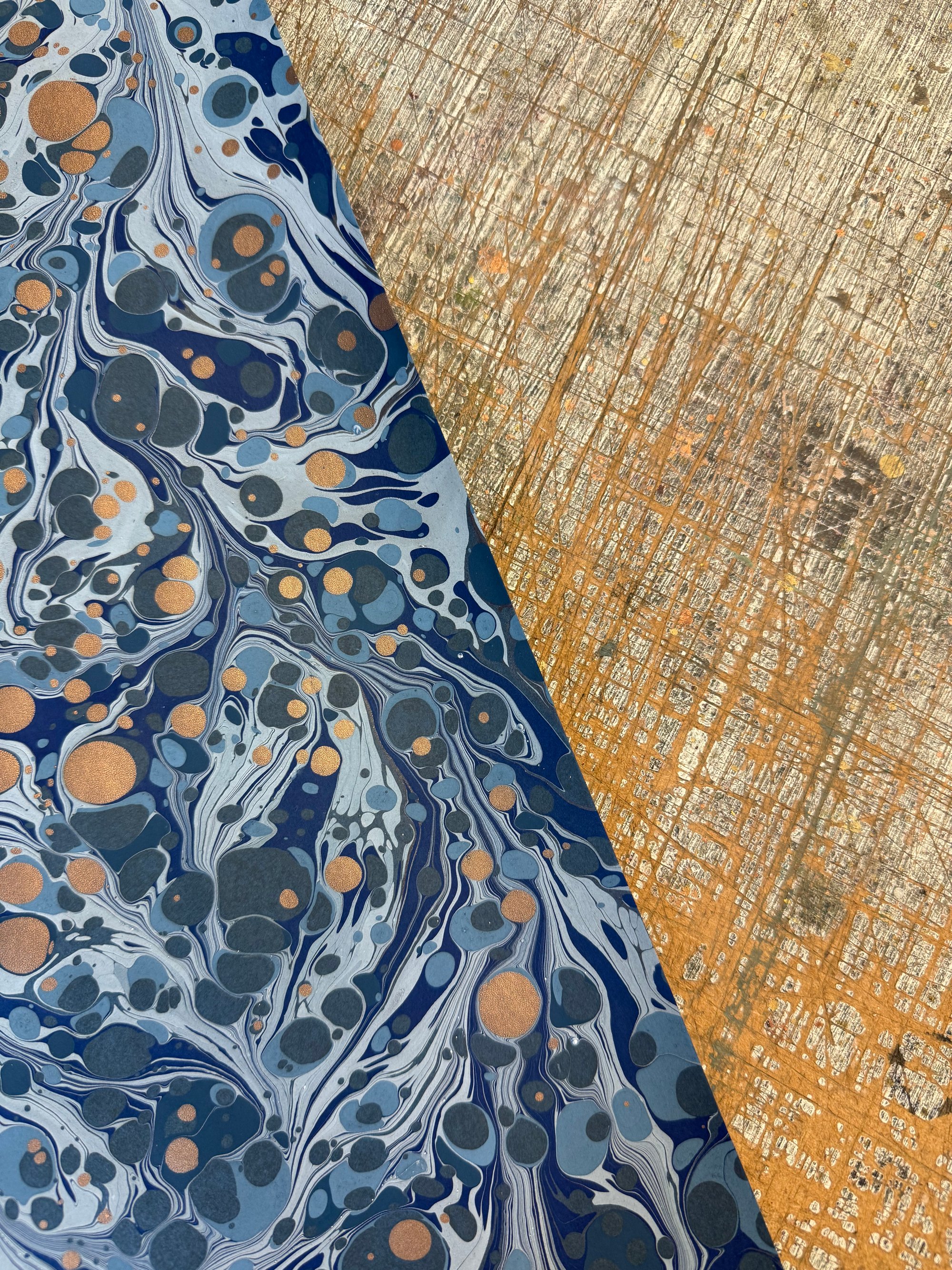 Hand Marbled paper one-of-a-kind 'Blue Palette'