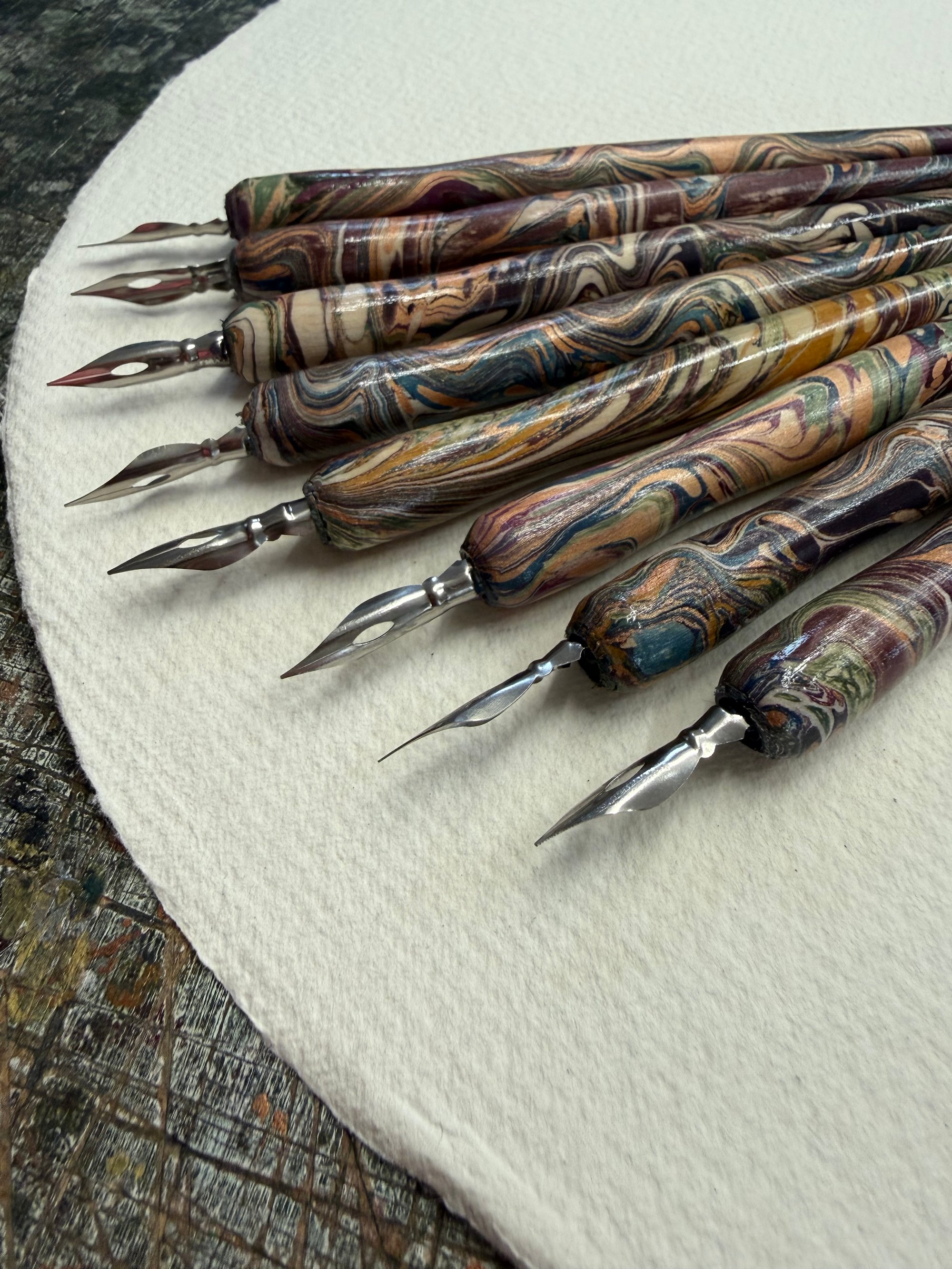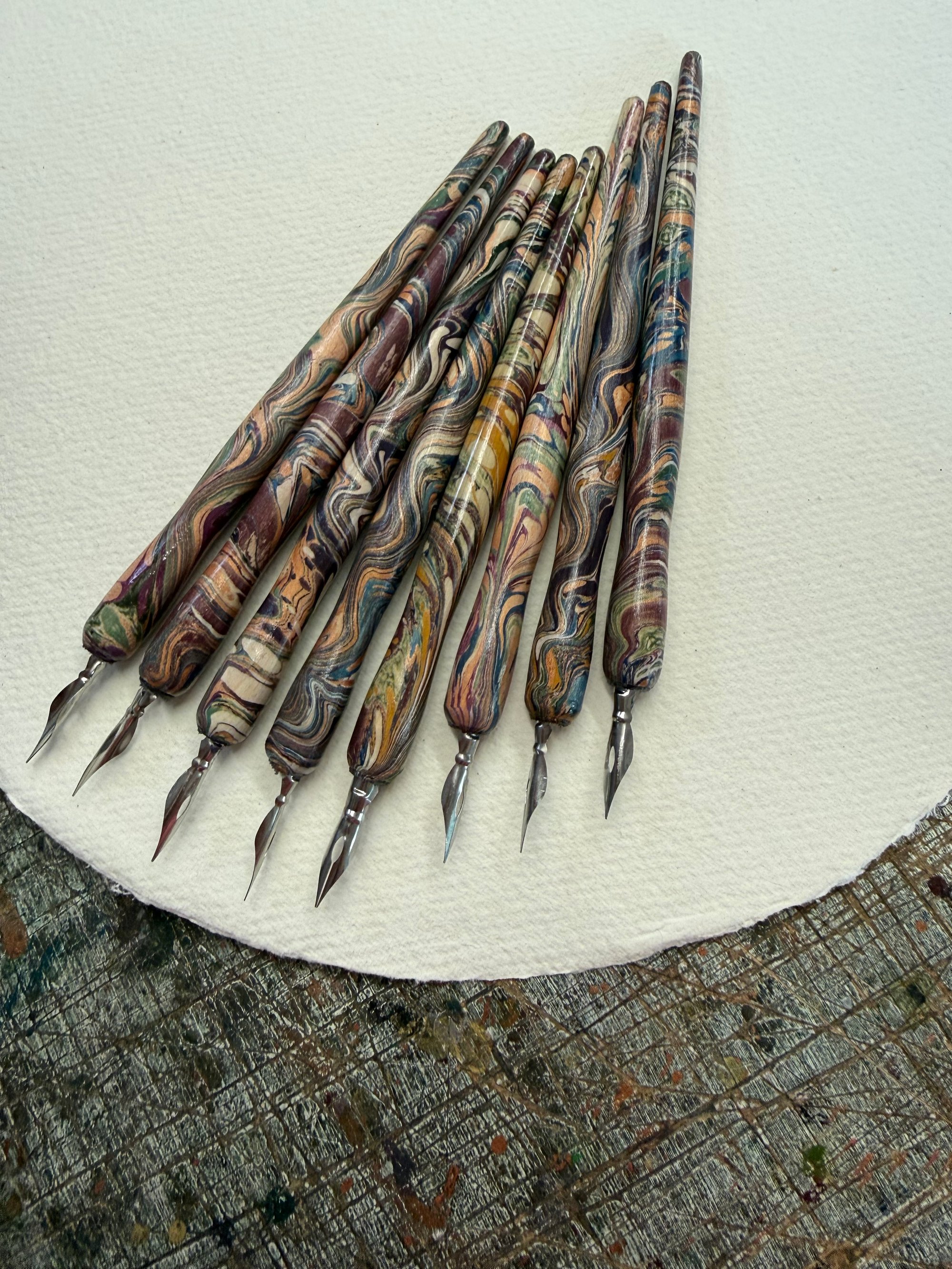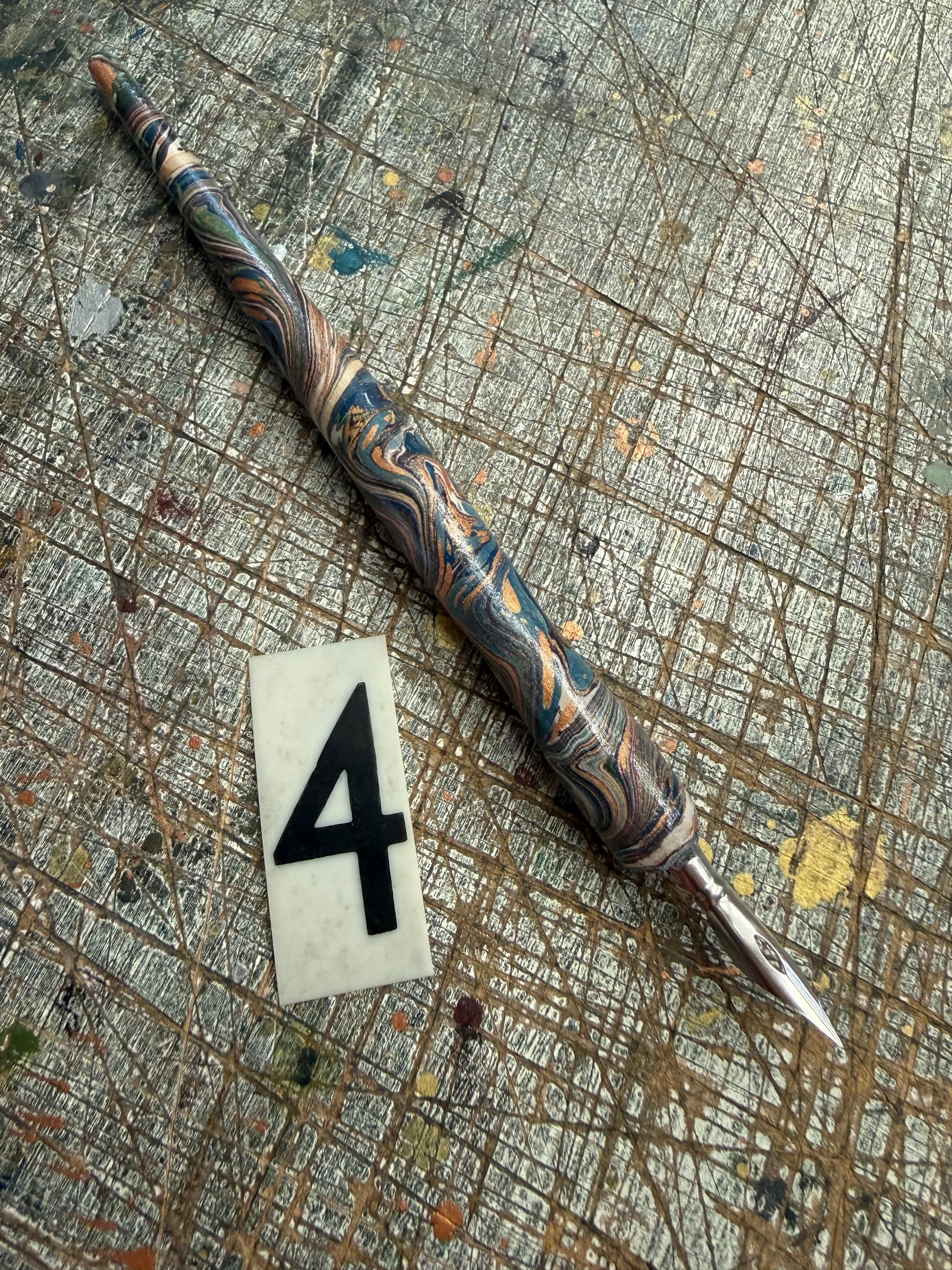 Hand Marbled Wooden Dip Pen - No.4