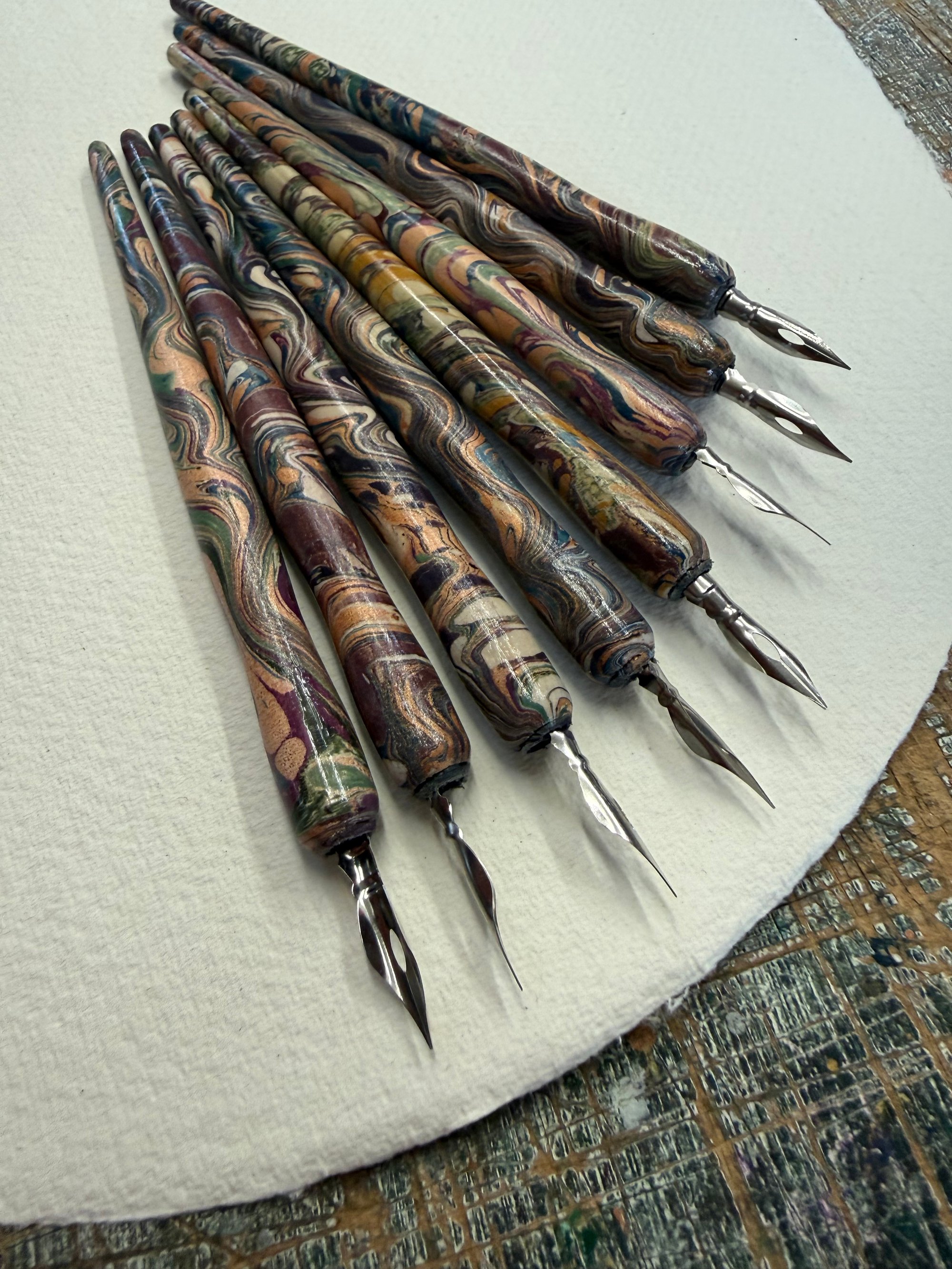 I've been wanting to marble some wooden dip pens for a while and the time finally came earlier this week.