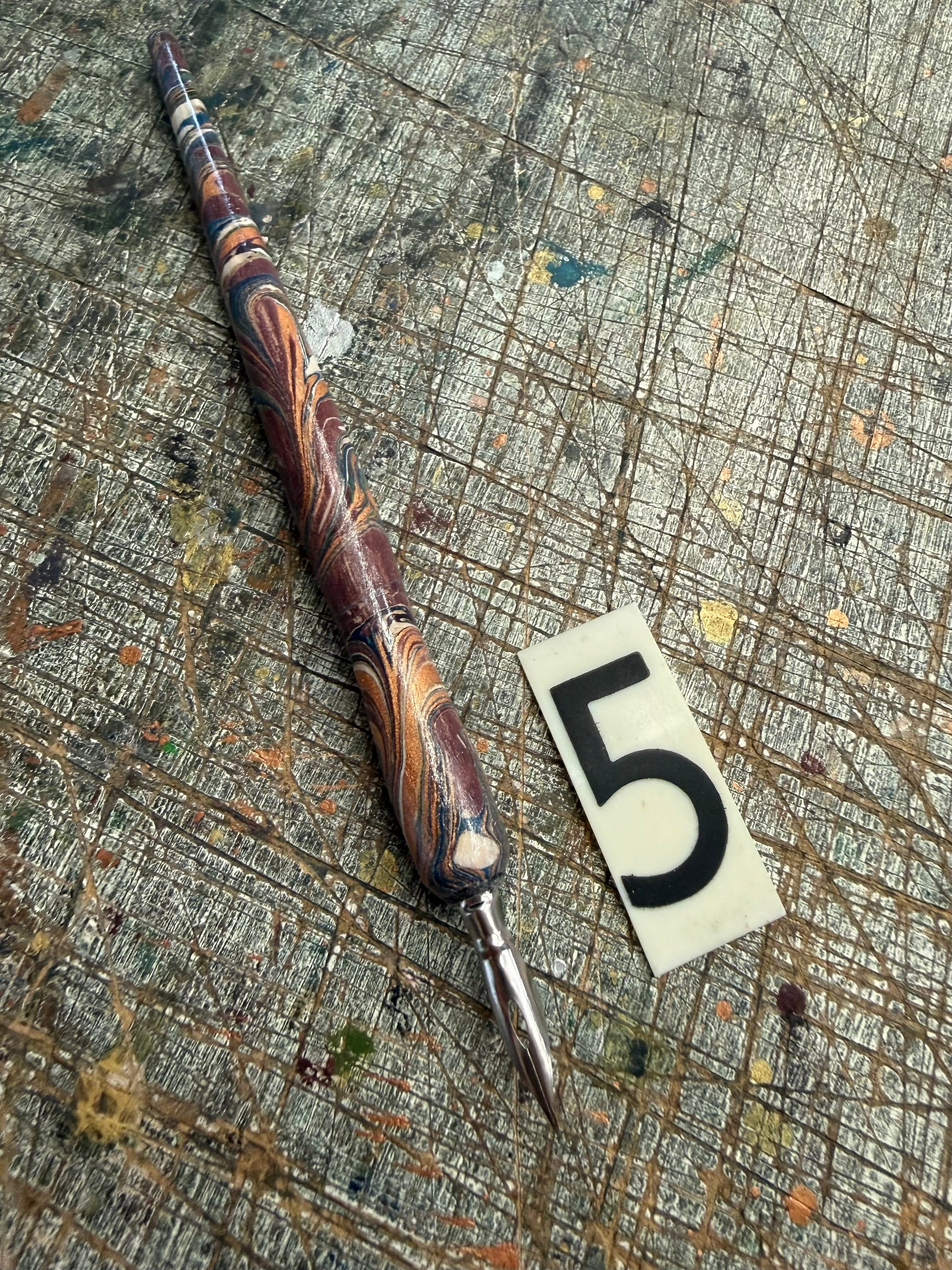 These pens are all hand marbled, one-offs. After marbling they have been hand glossed to make them more durable.