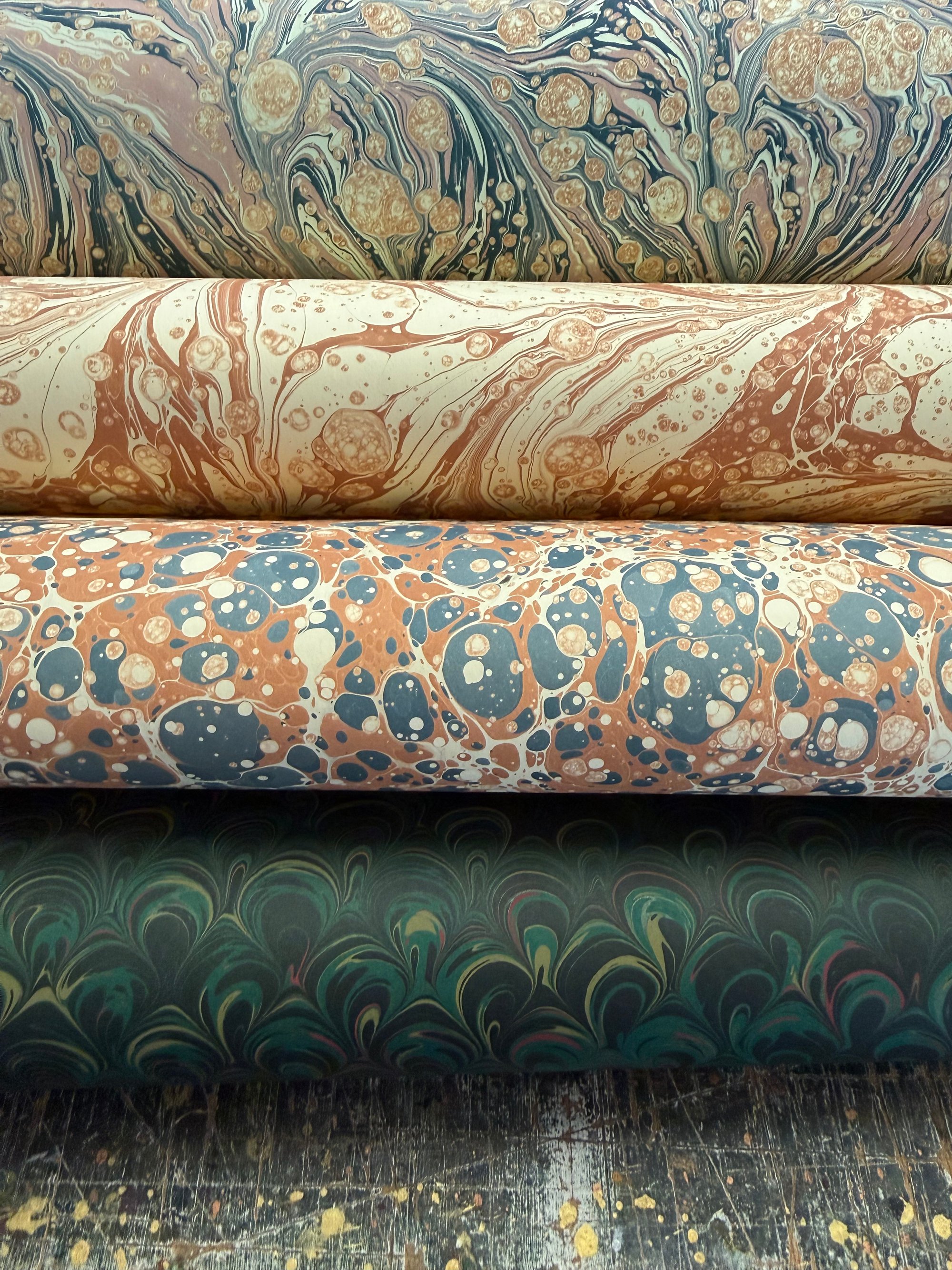 This is our opportunity to show and sell the many sheets of assorted first quality hand marbled papers that we have available. The emphasis here is on bringing you as many paper options as possible and to do this we have to keep the listings and photographs as simple as possible.