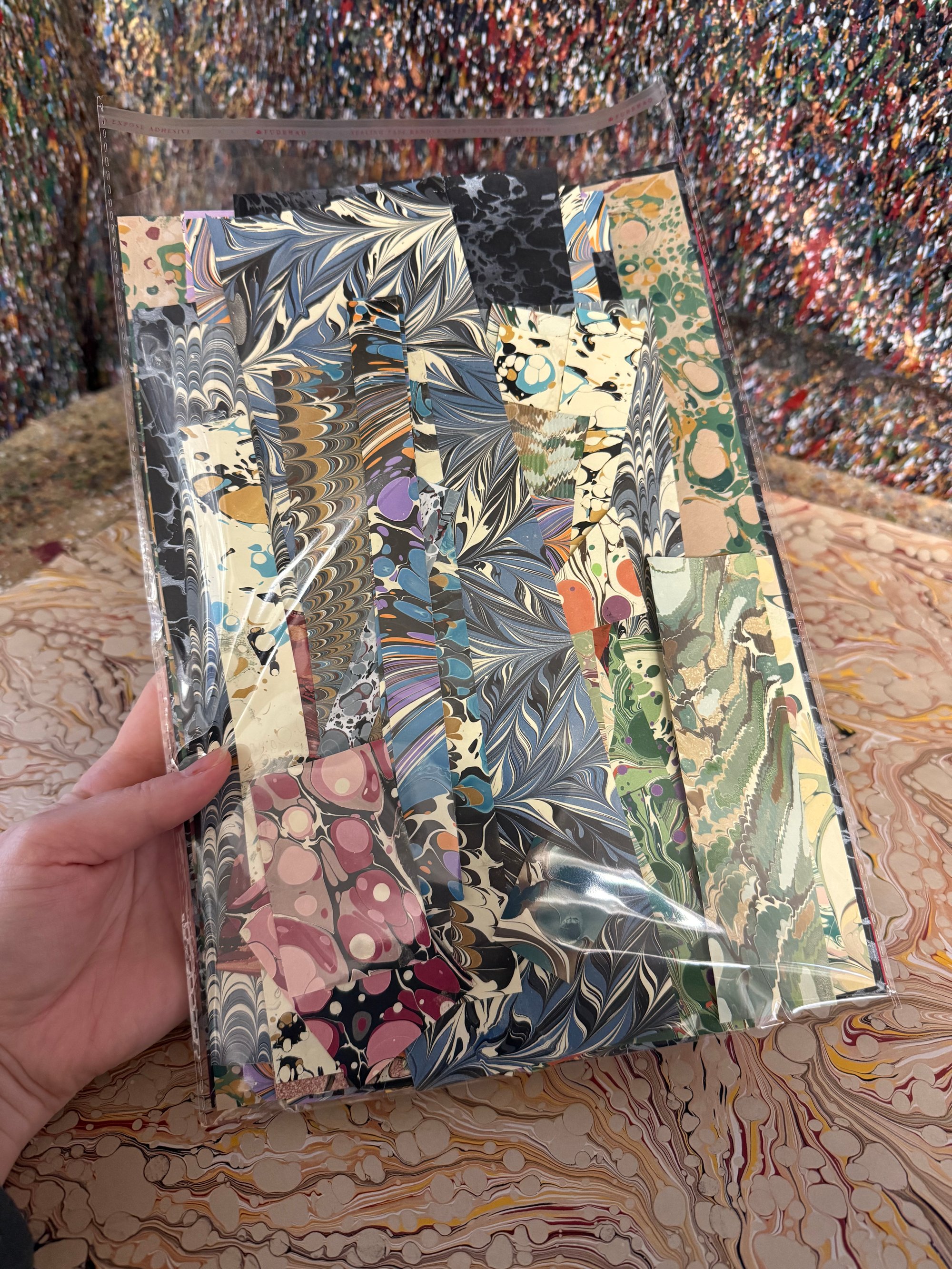 Assorted off-cut pack / gift pack - 100g of hand marbled paper