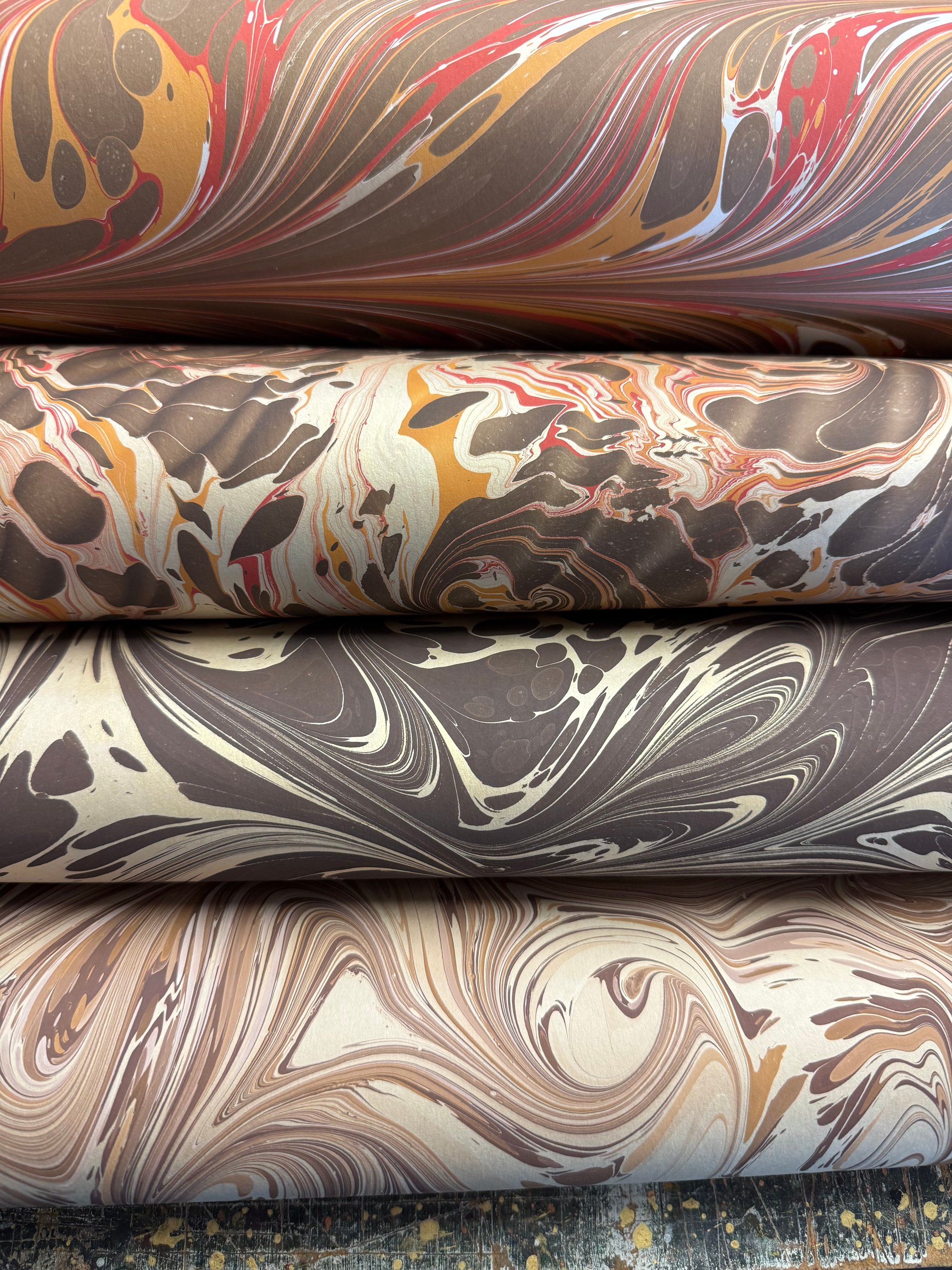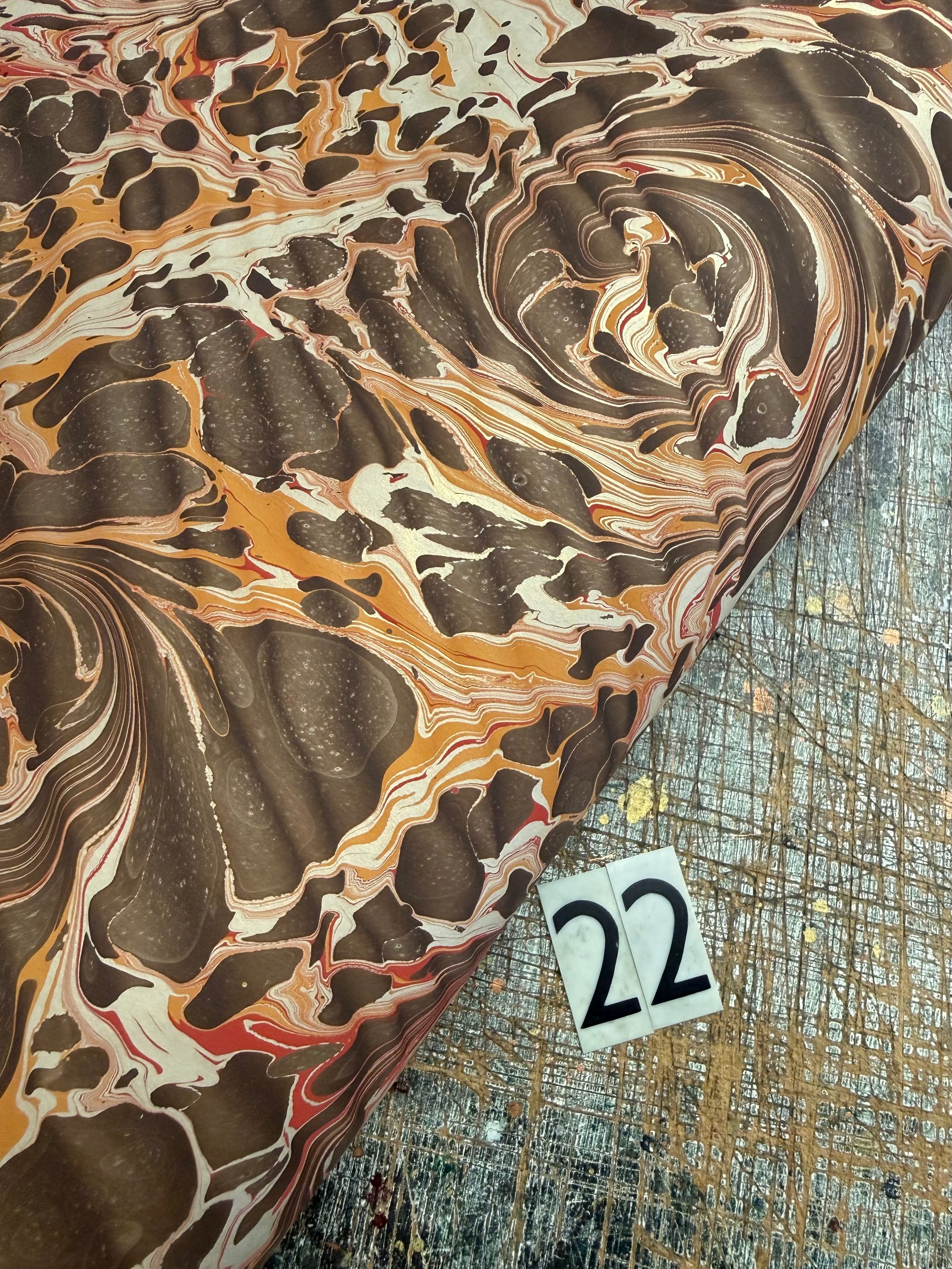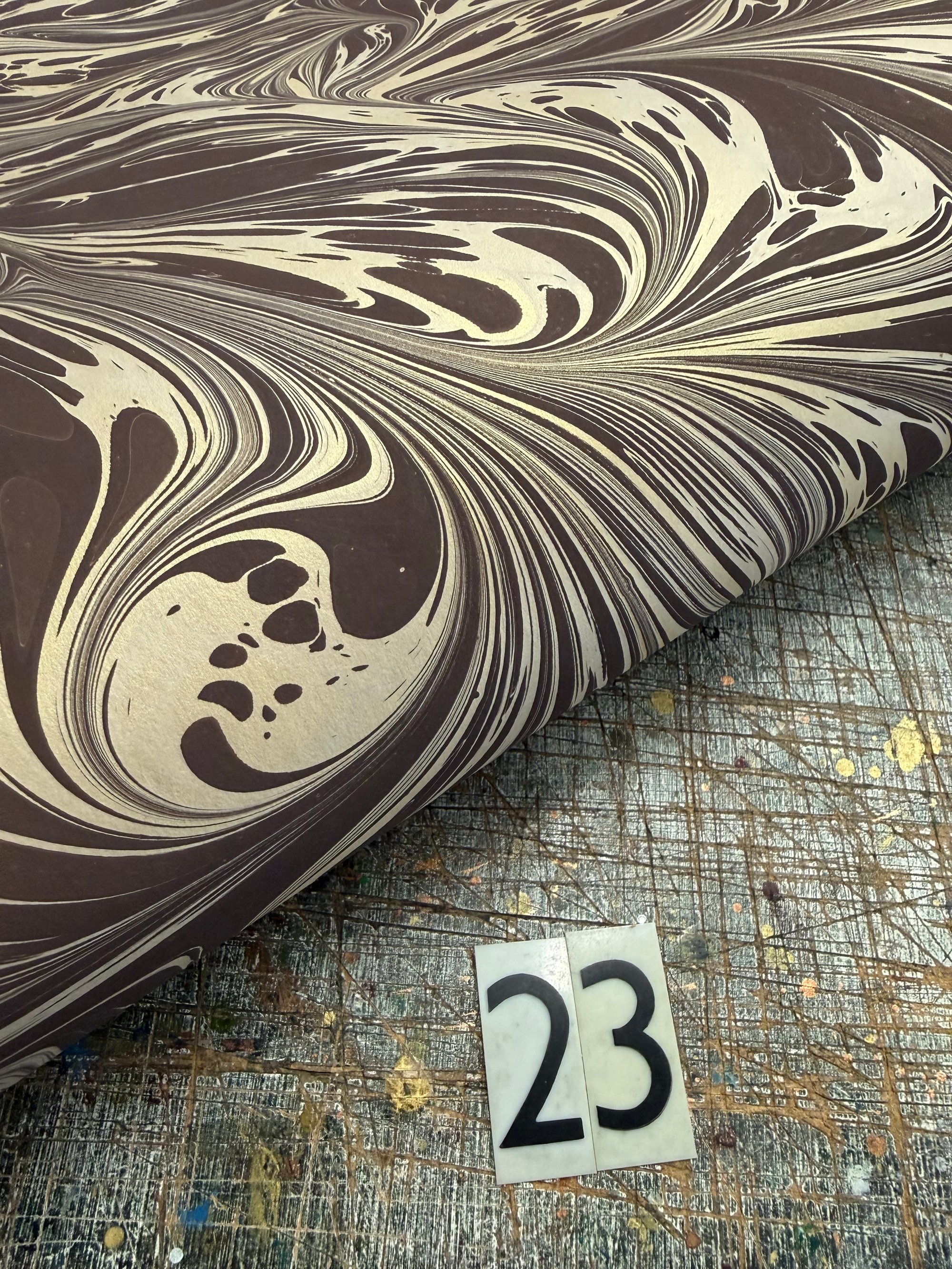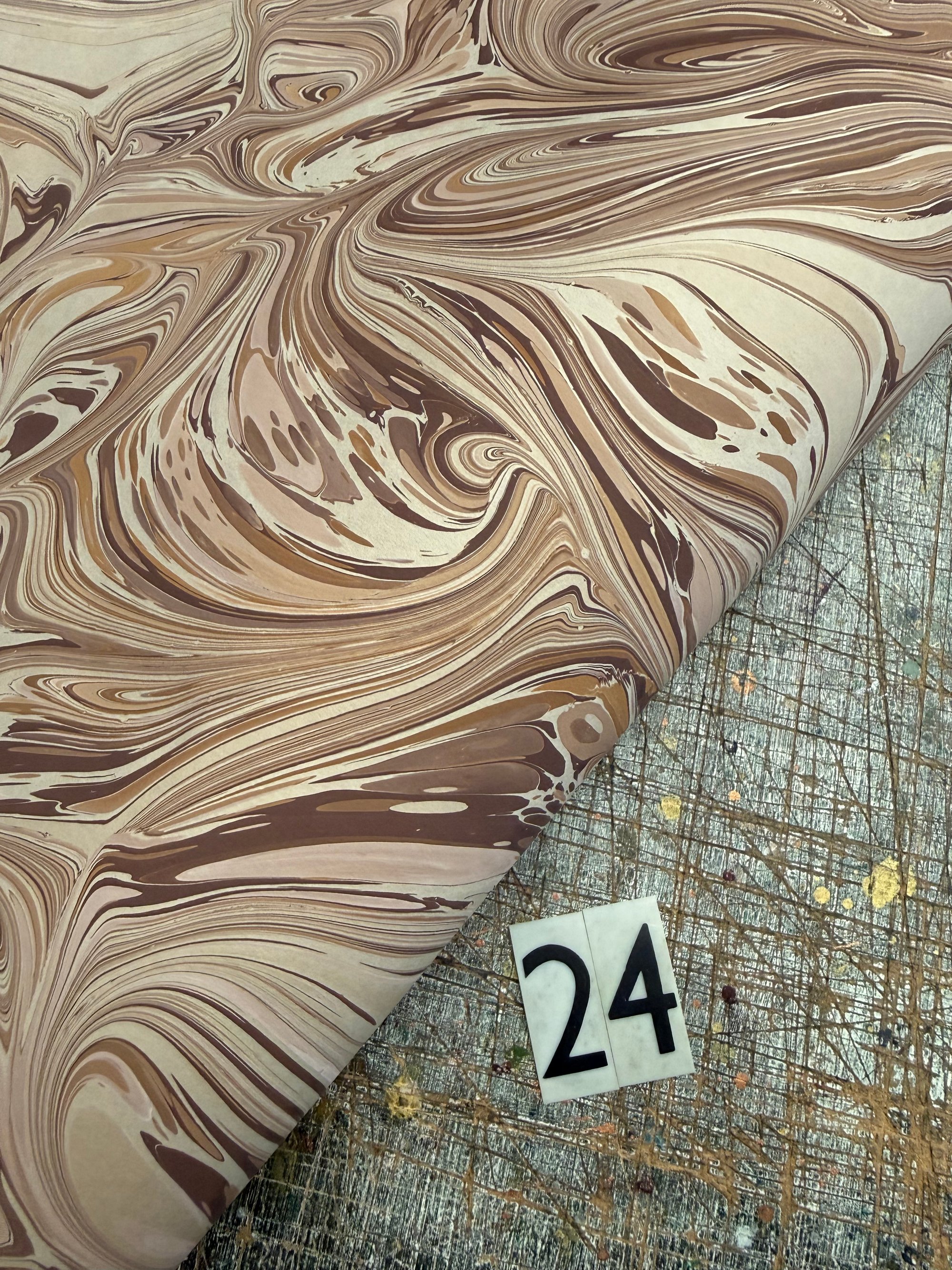This is our opportunity to show and sell the many sheets of assorted first quality hand marbled papers that we have available. The emphasis here is on bringing you as many paper options as possible and to do this we have to keep the listings and photographs as simple as possible.