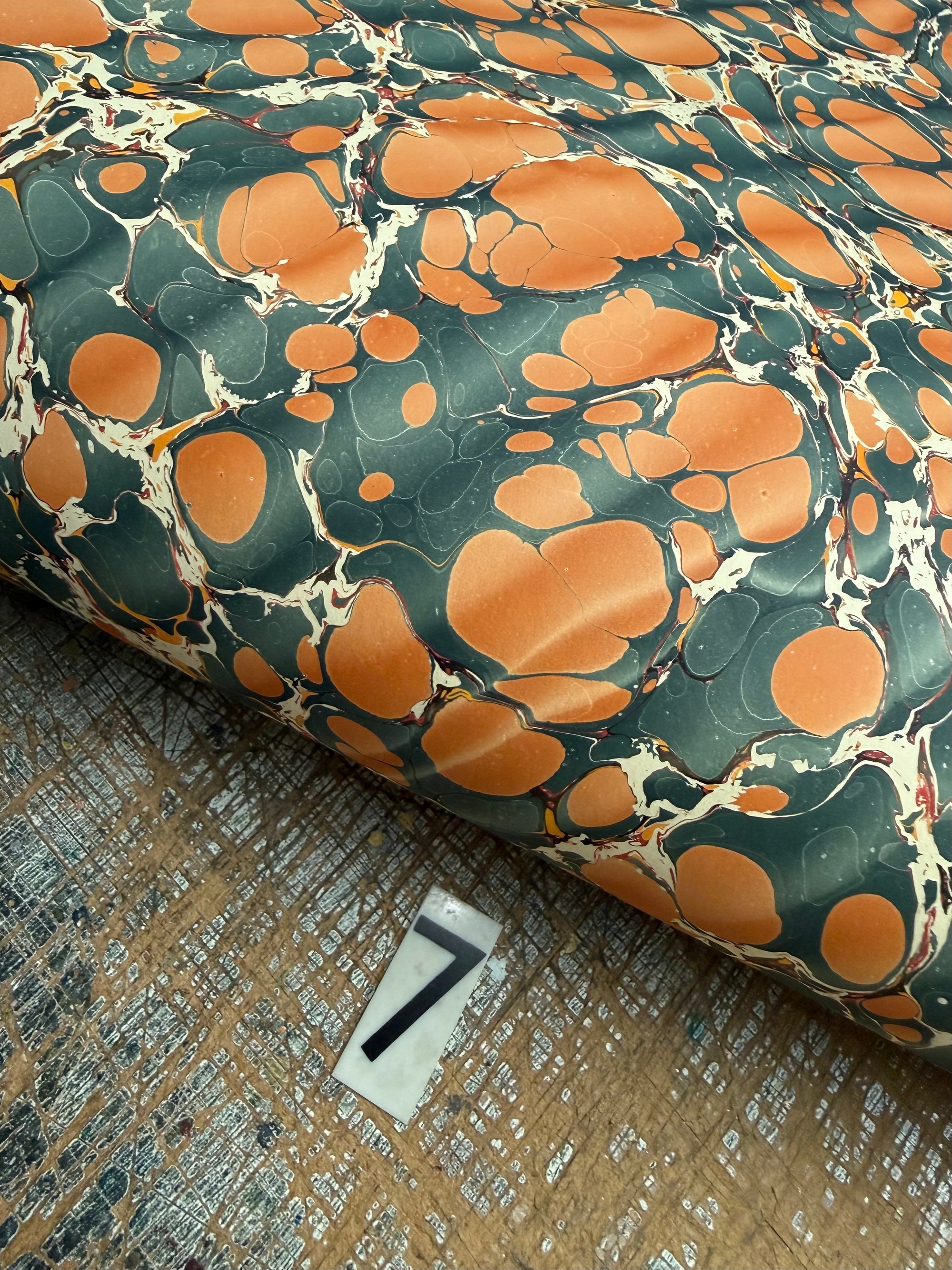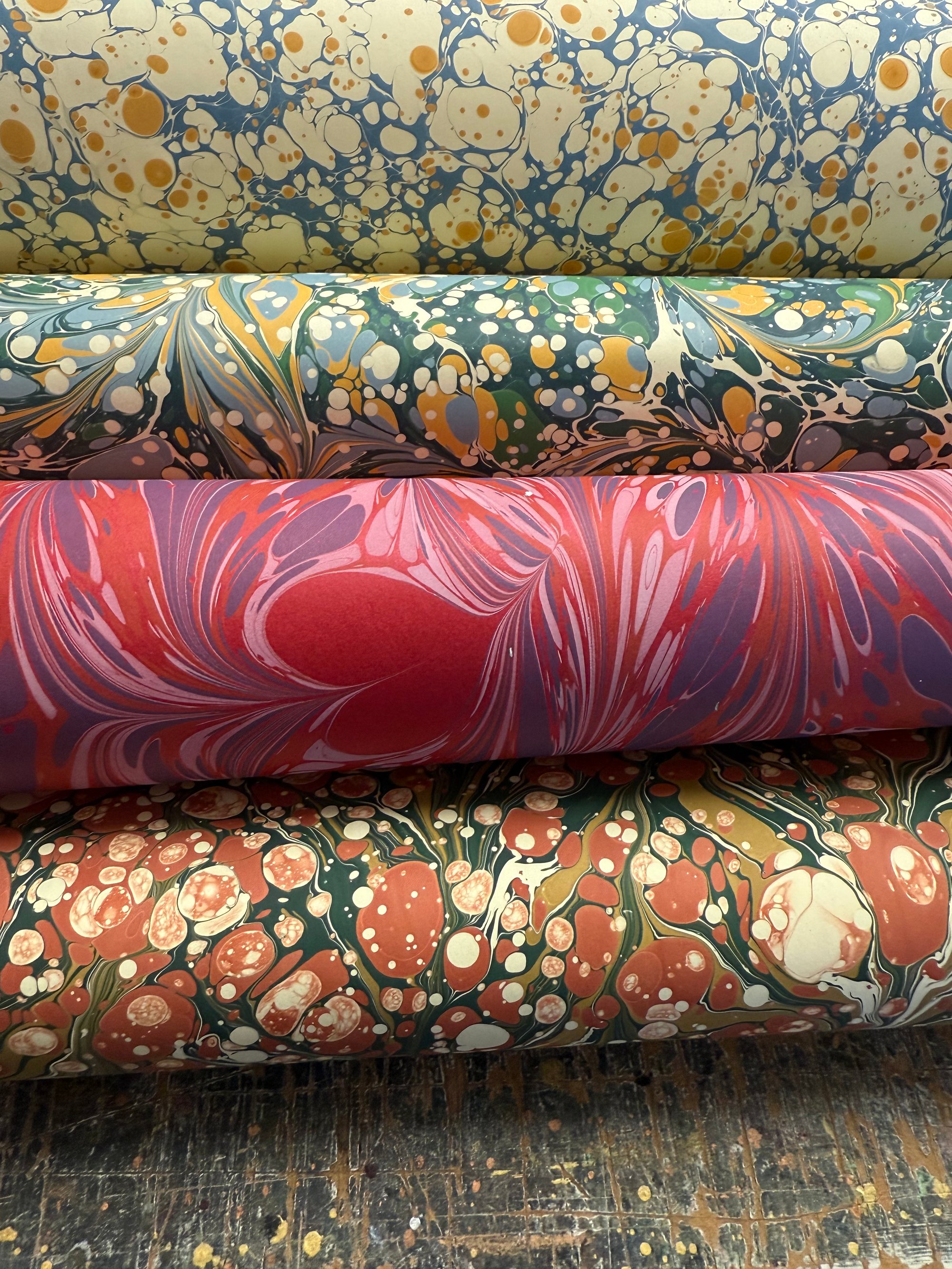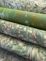 This is our opportunity to show and sell the many sheets of assorted first quality hand marbled papers that we have available. The emphasis here is on bringing you as many paper options as possible and to do this we have to keep the listings and photographs as simple as possible.