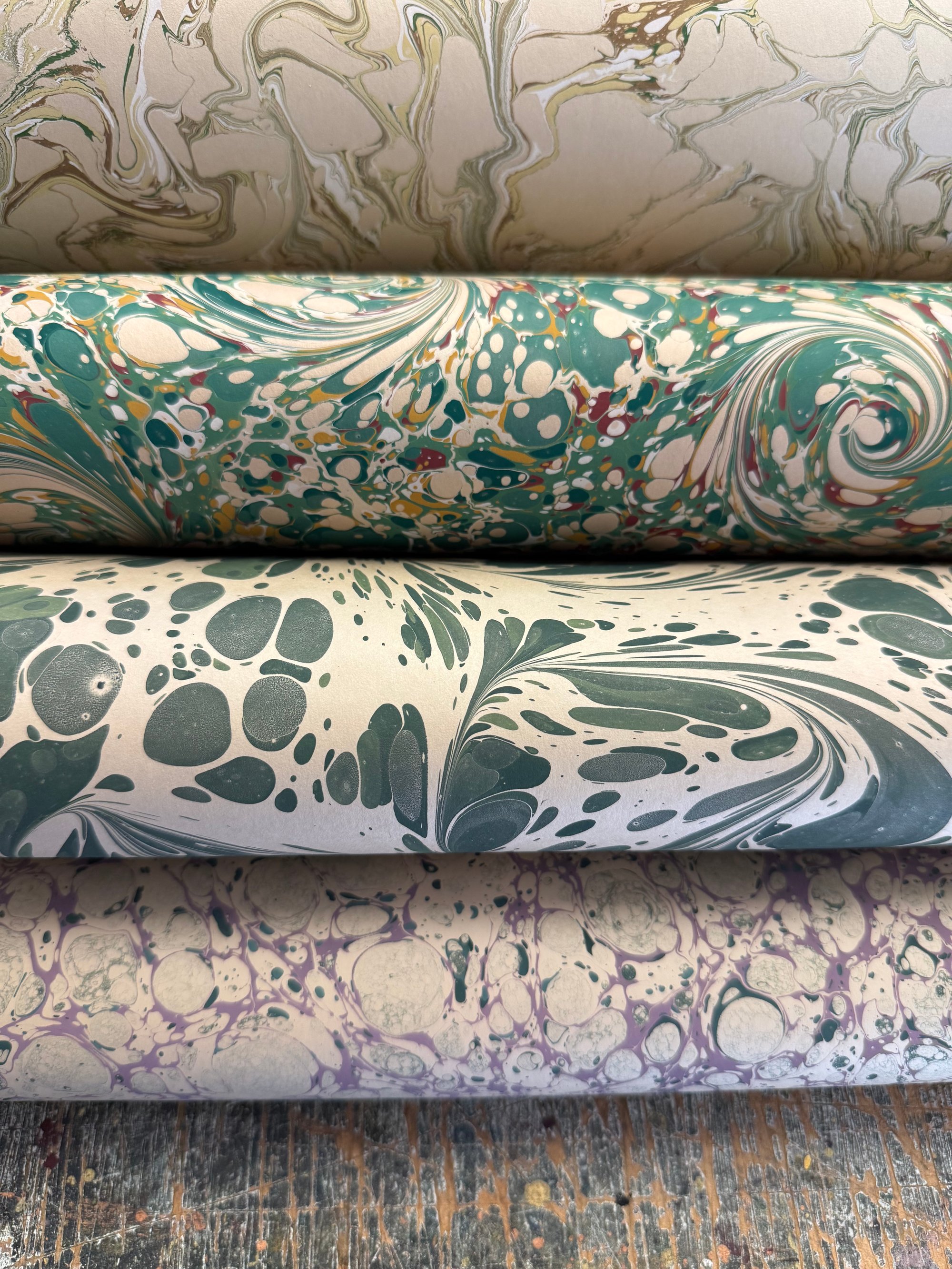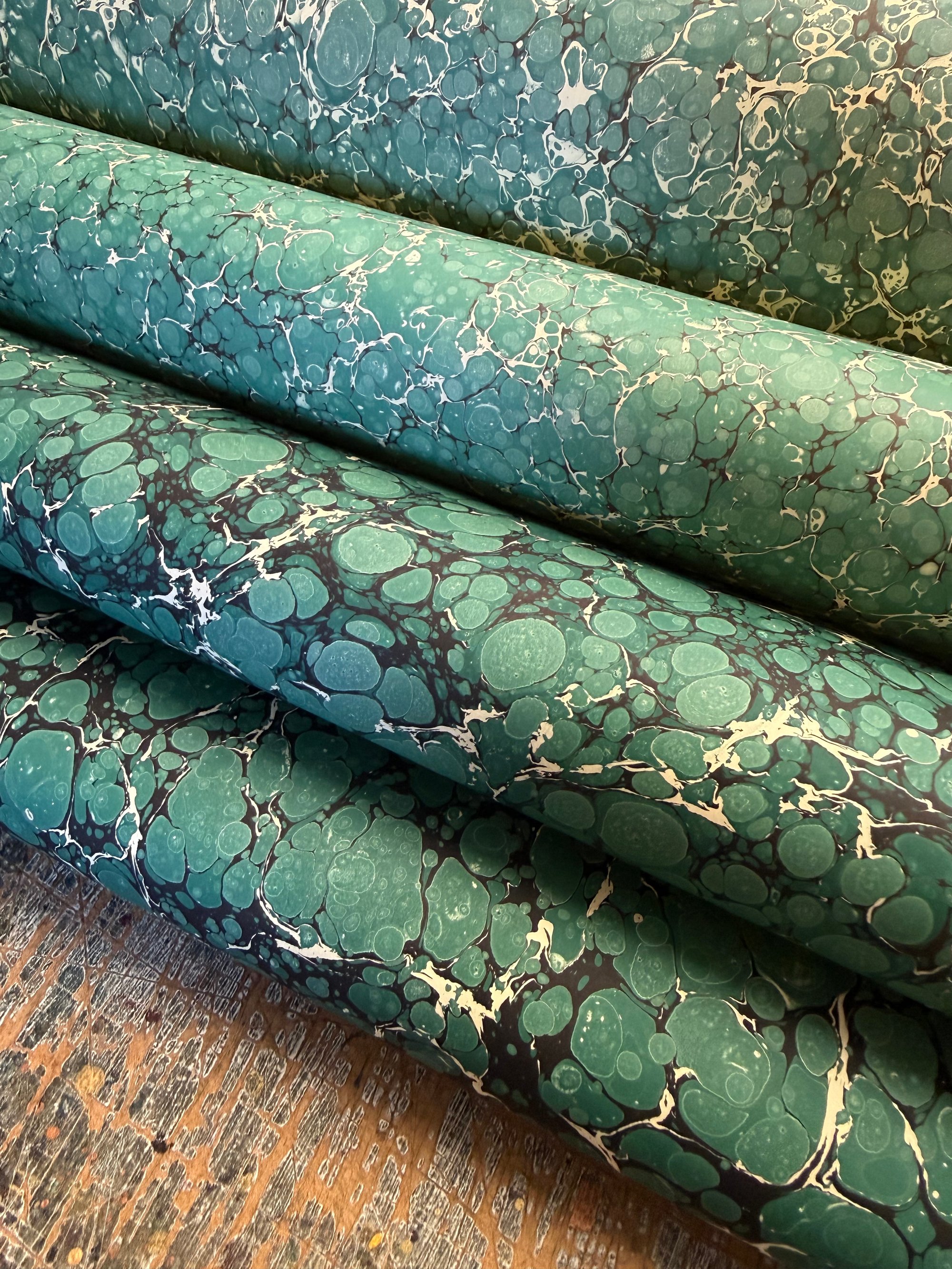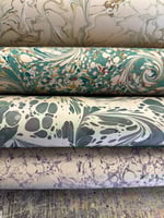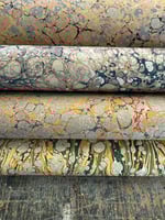 This is our opportunity to show and sell the many sheets of assorted first quality hand marbled papers that we have available. The emphasis here is on bringing you as many paper options as possible and to do this we have to keep the listings and photographs as simple as possible.