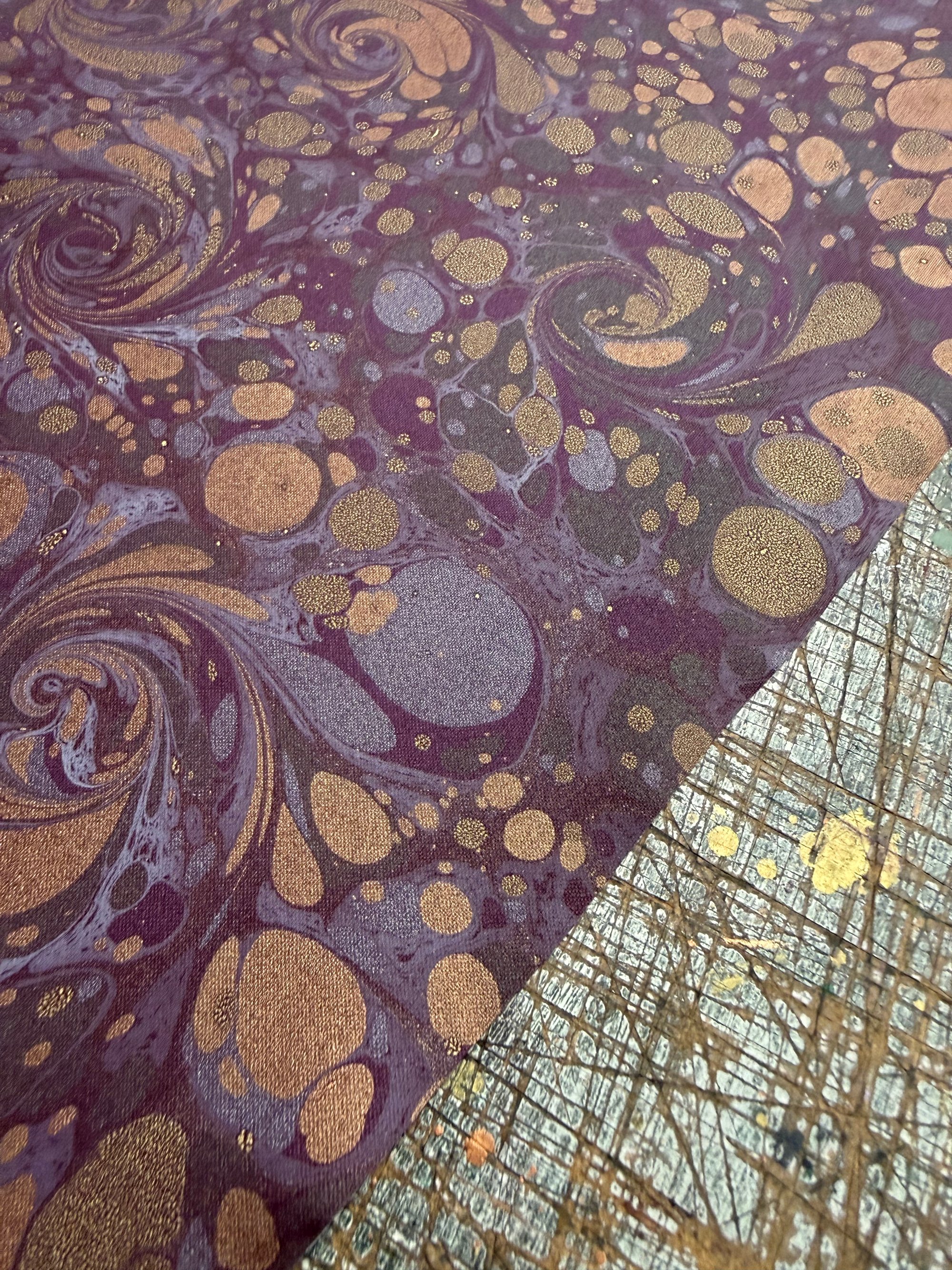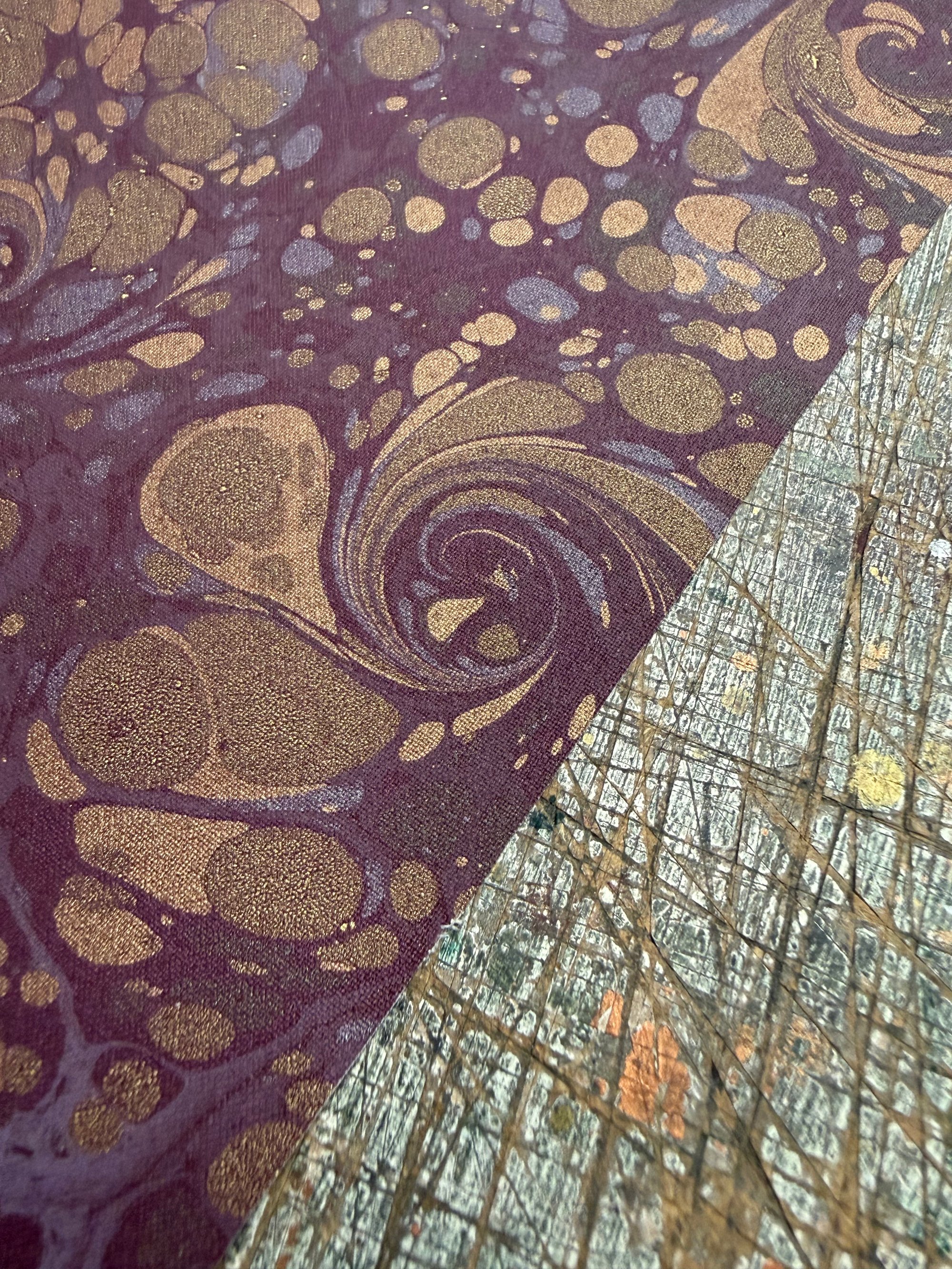 The fabric is not cut perfectly square edged and there may be a salvage edge which has also been marbled.