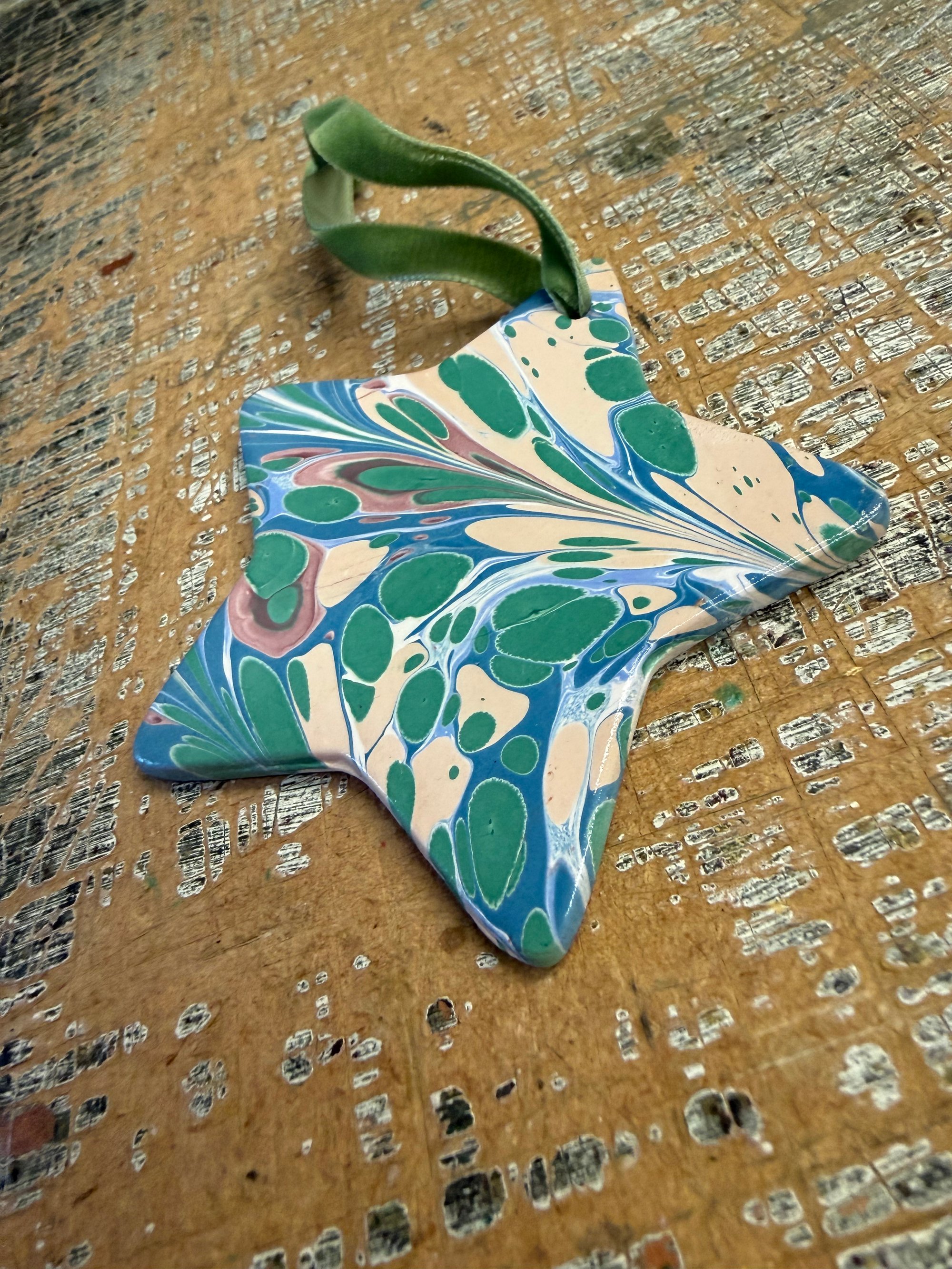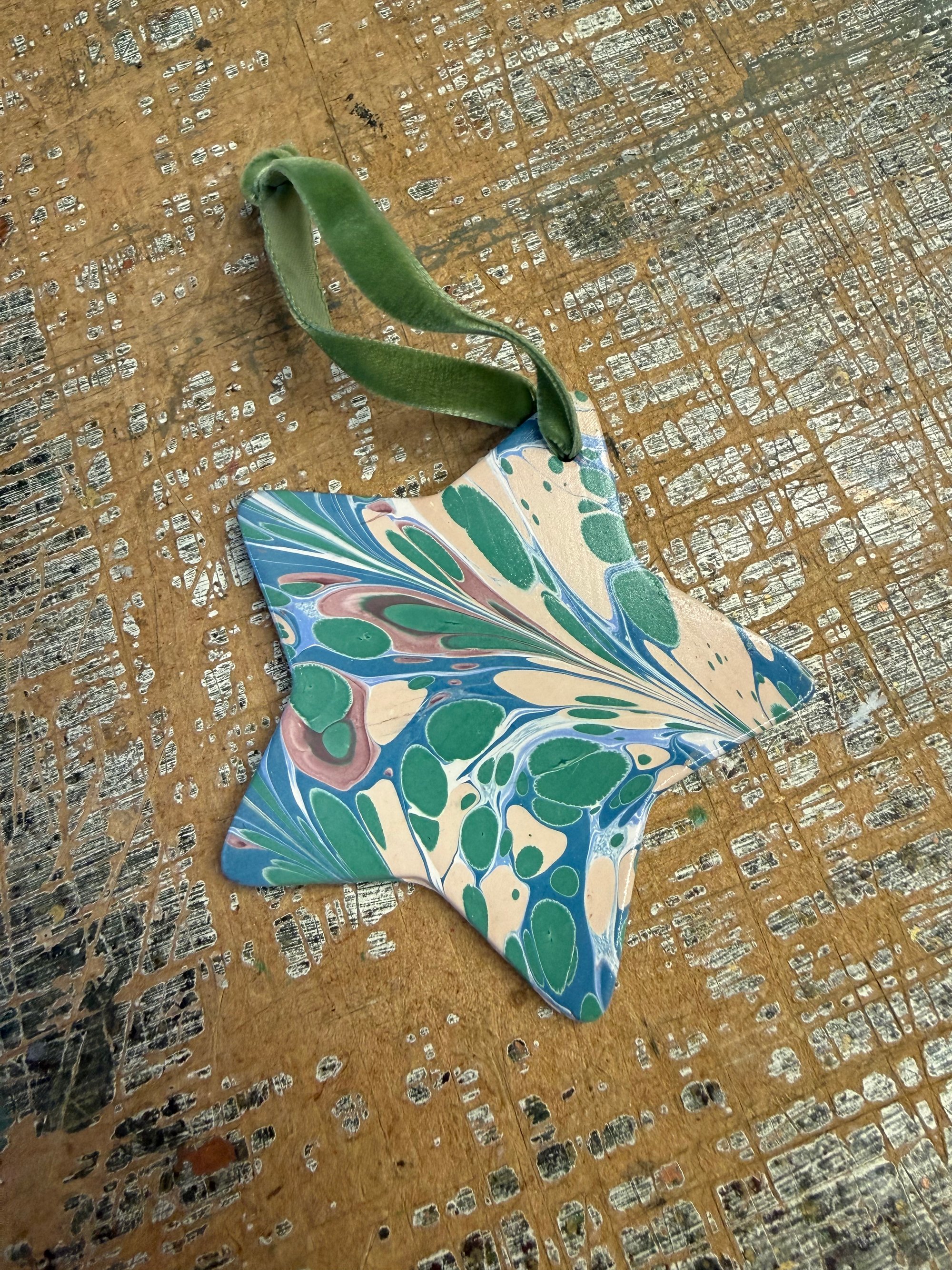 One-of a-kind Hand Marbled Ceramic Stars - 1 available on sale