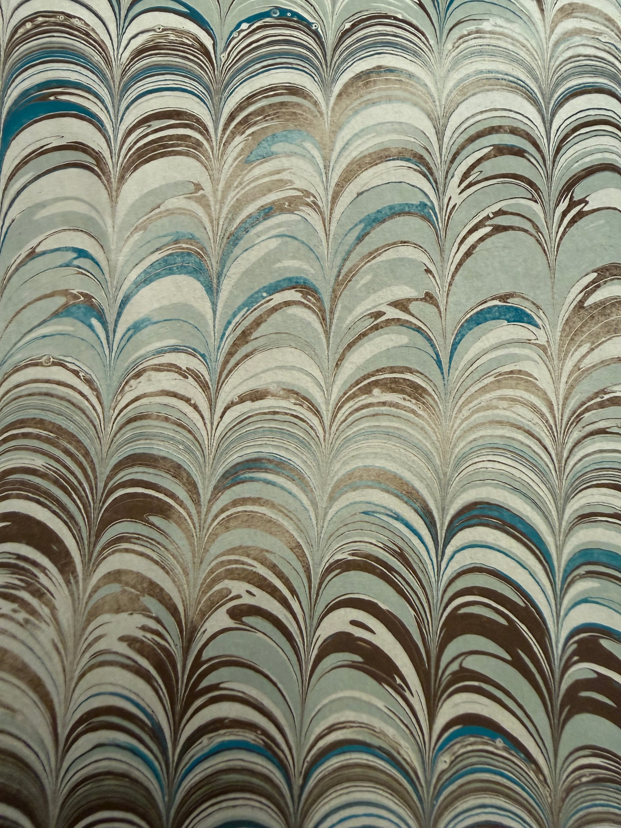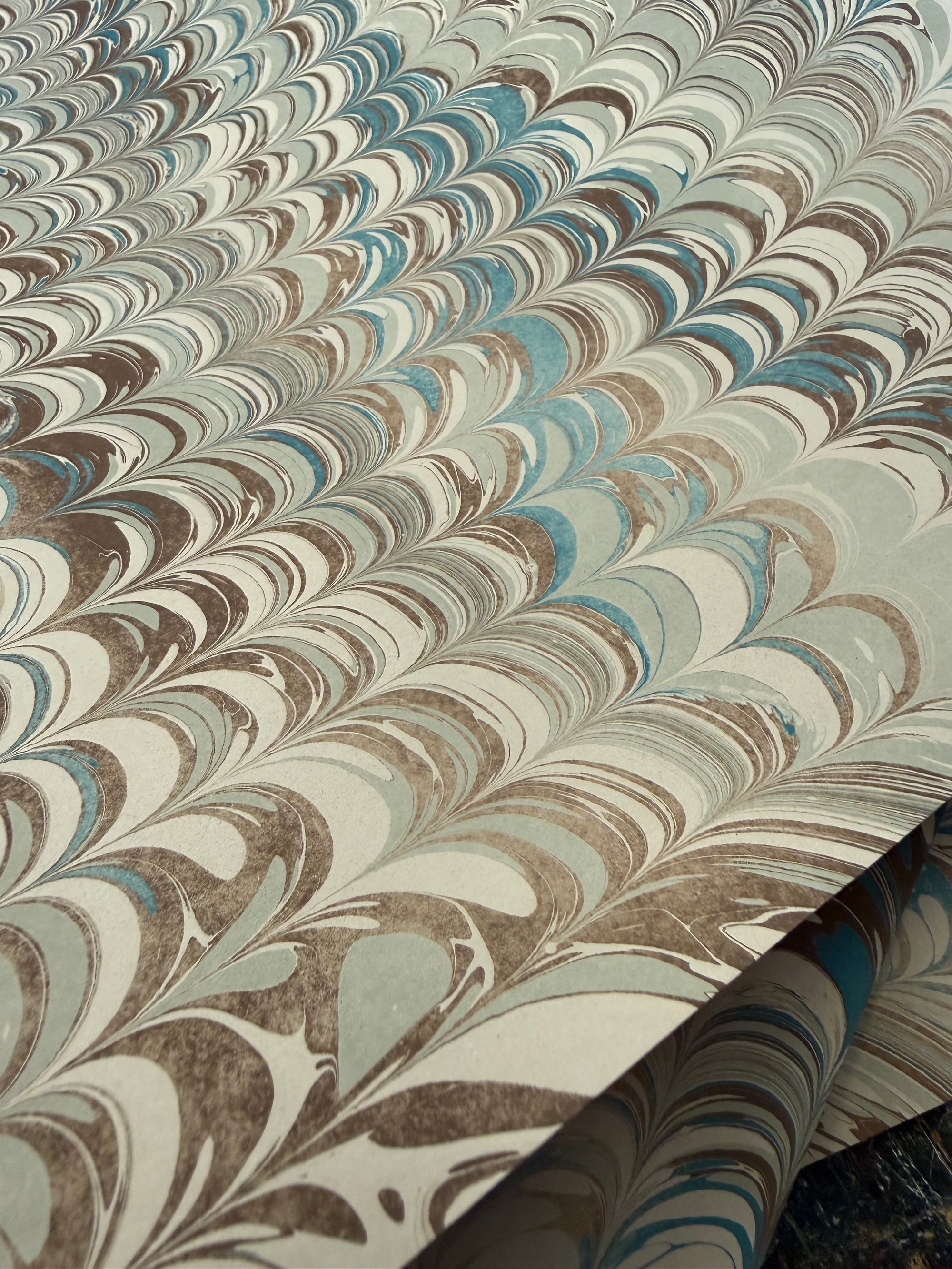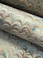 This pattern has been created to look more aged and worn with areas of the sheet that have been purposefully given a washed-out effect. These papers are inspired by my first introduction to marbling which was via the endpapers in my 'Pressed Fairy Journal'.