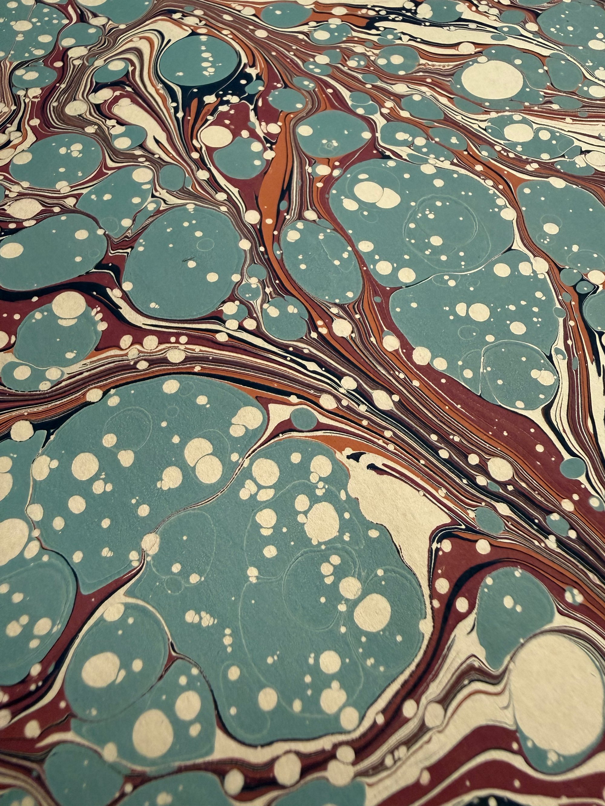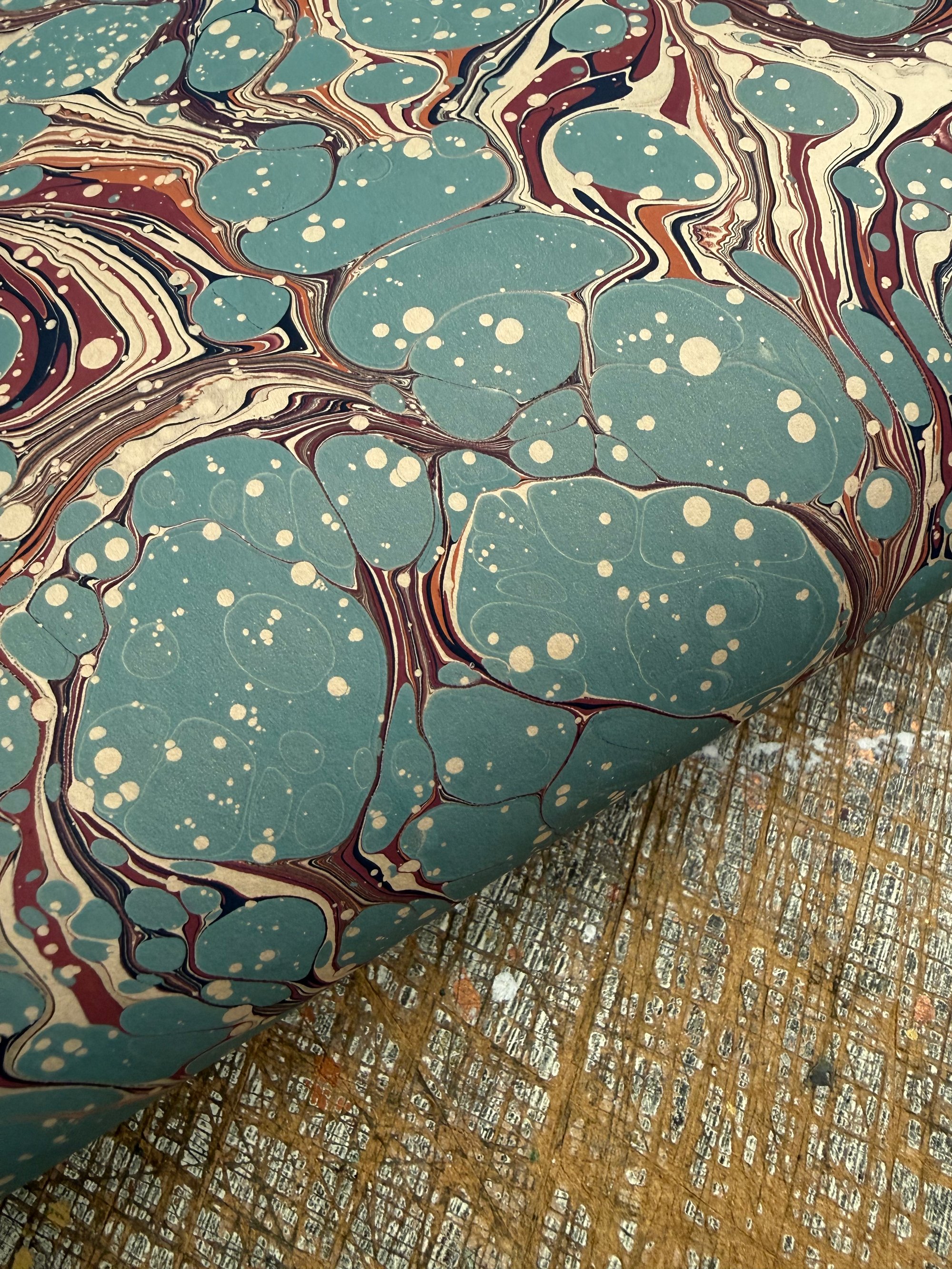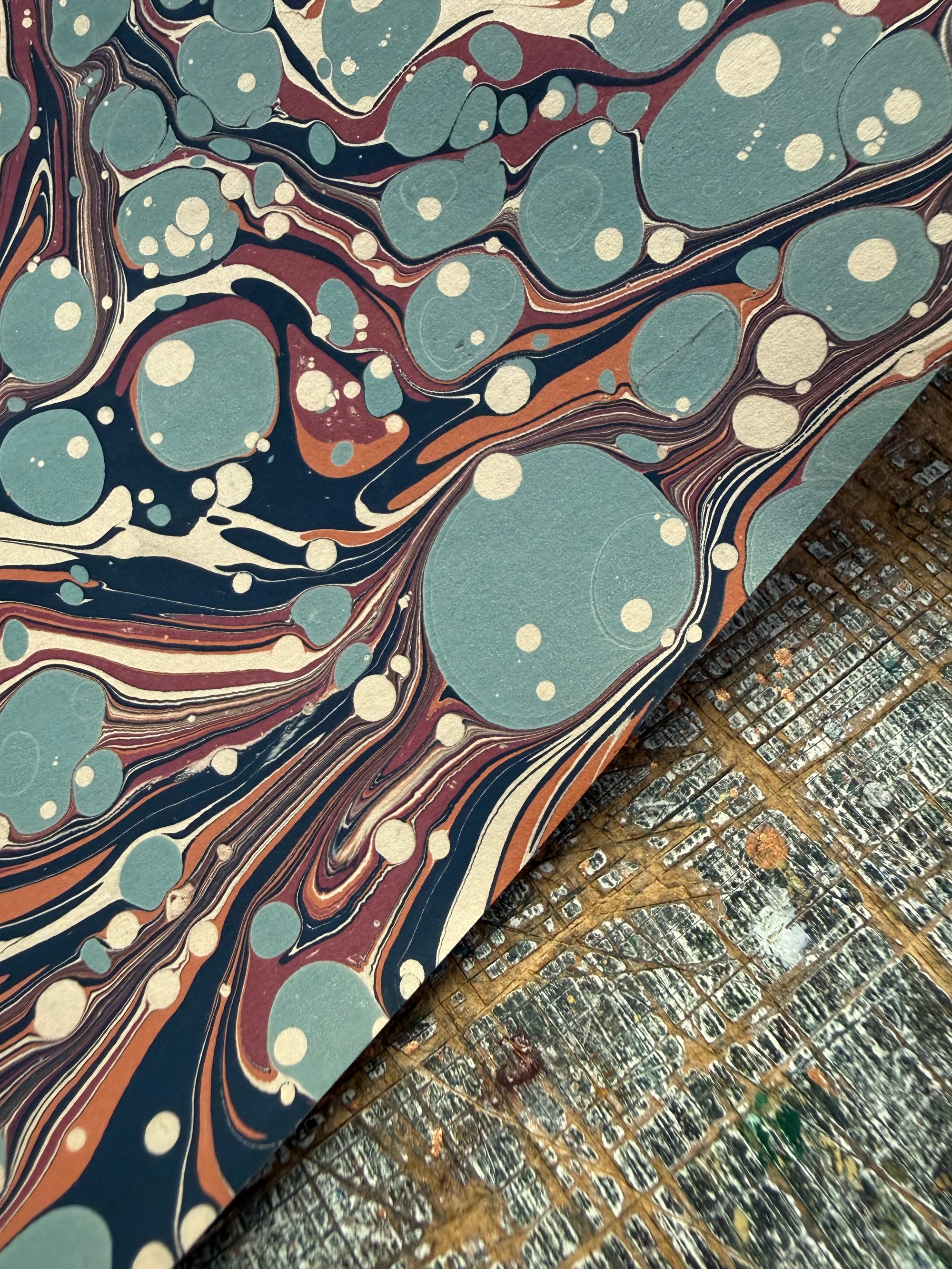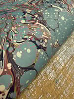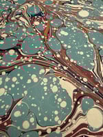 One of a kind hand marbled paper 'Blue Spots' on fawn base paper