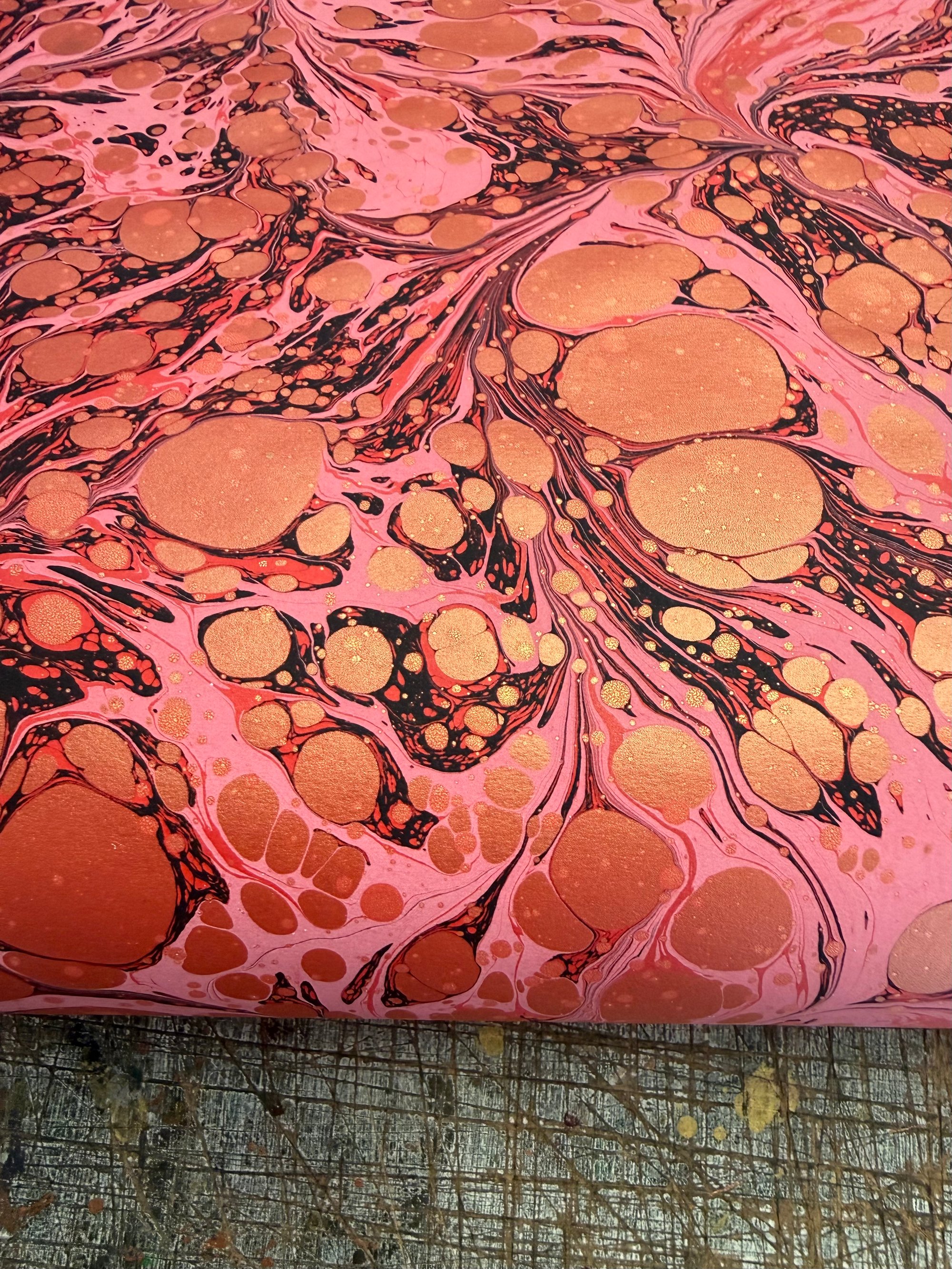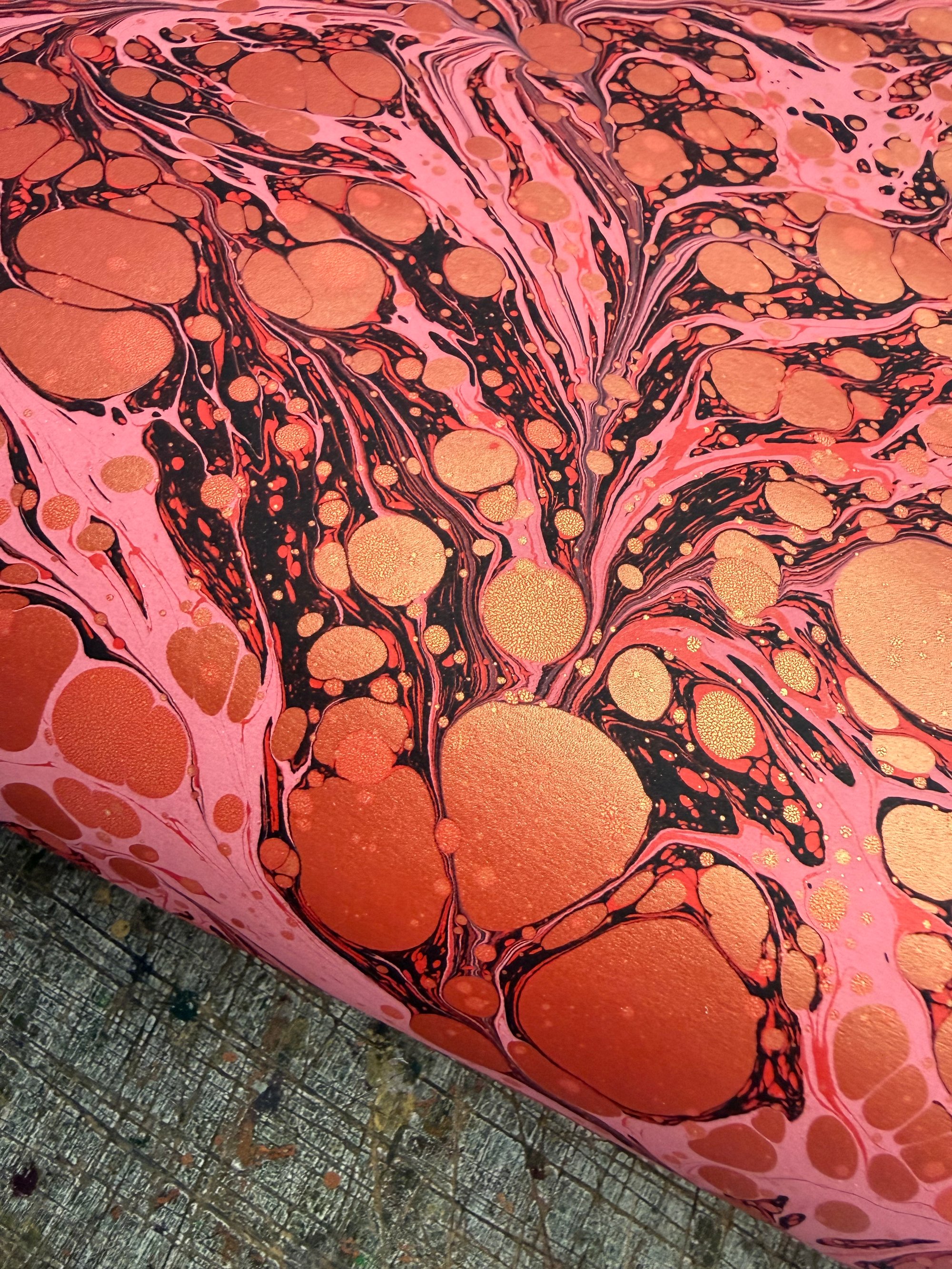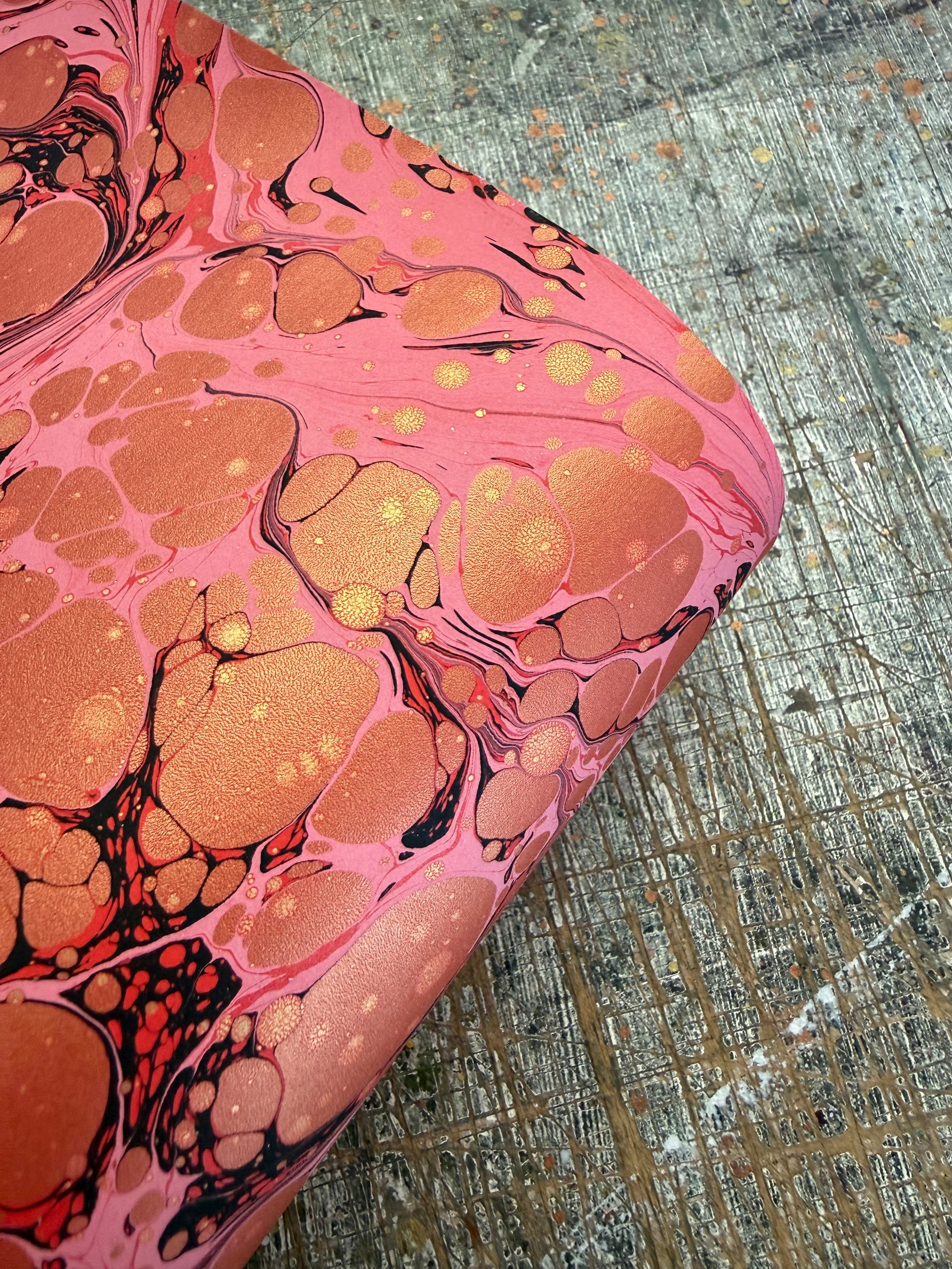 One of a kind hand marbled paper 'Golden Cardinal' SHORT GRAIN