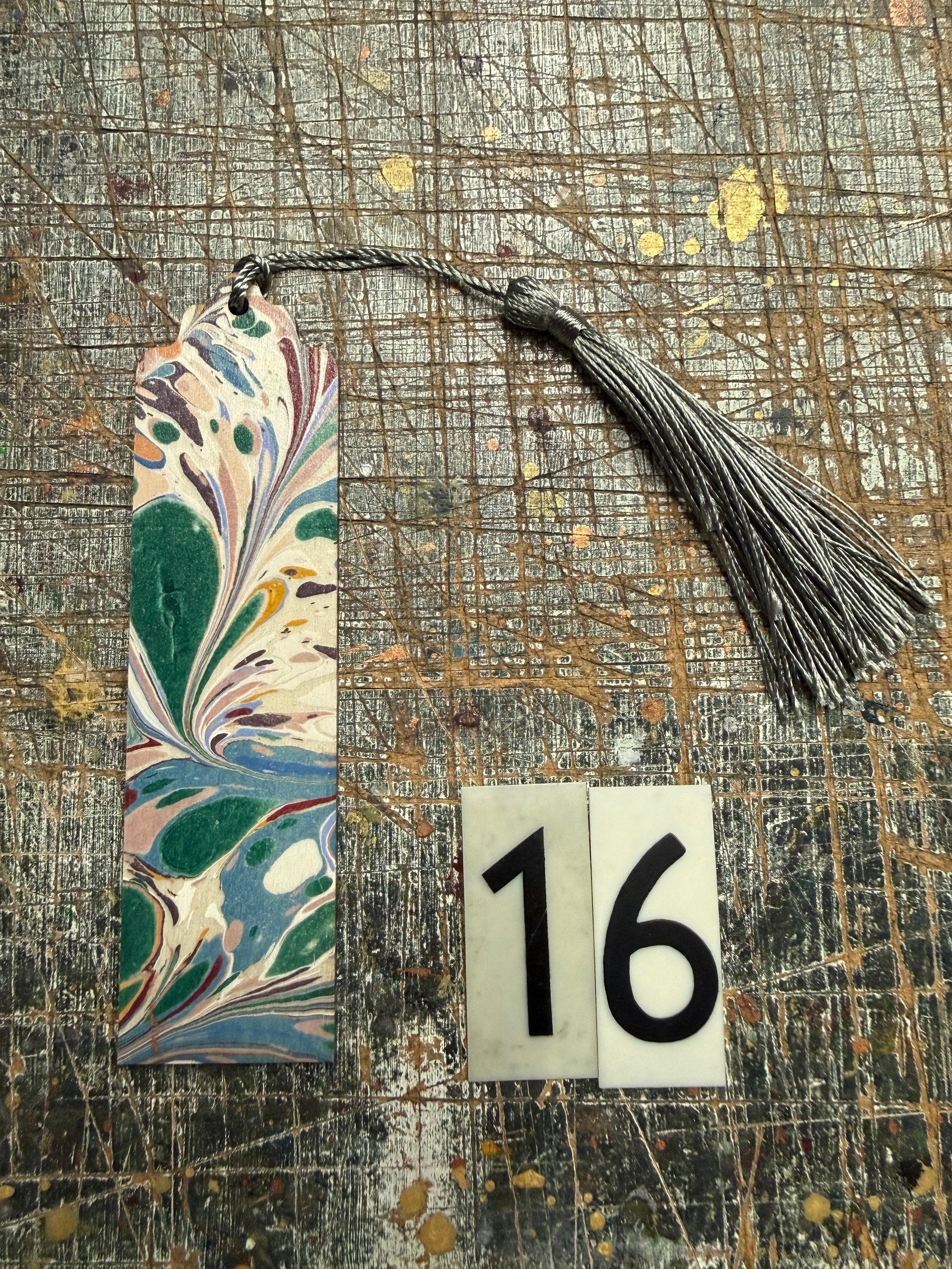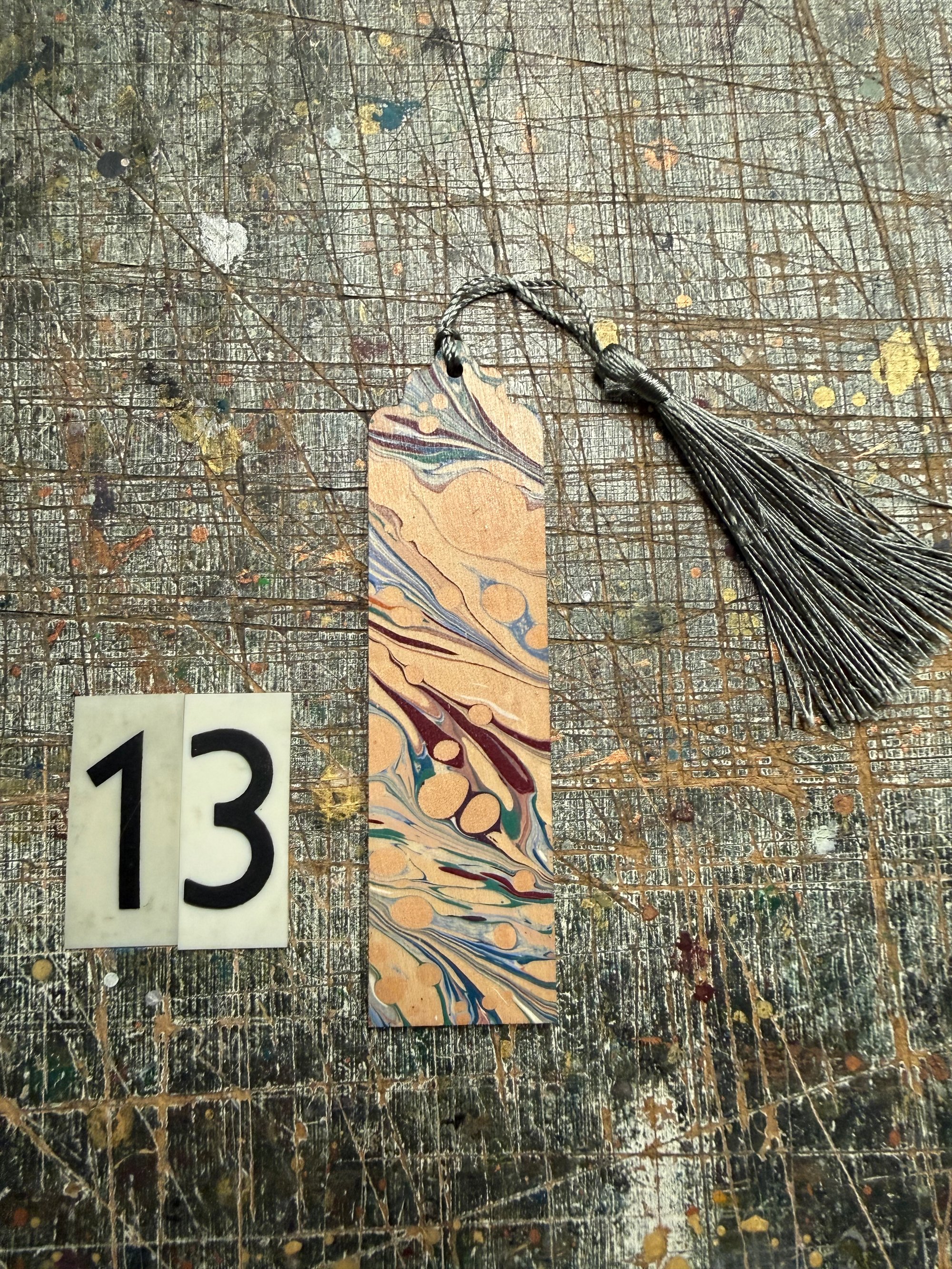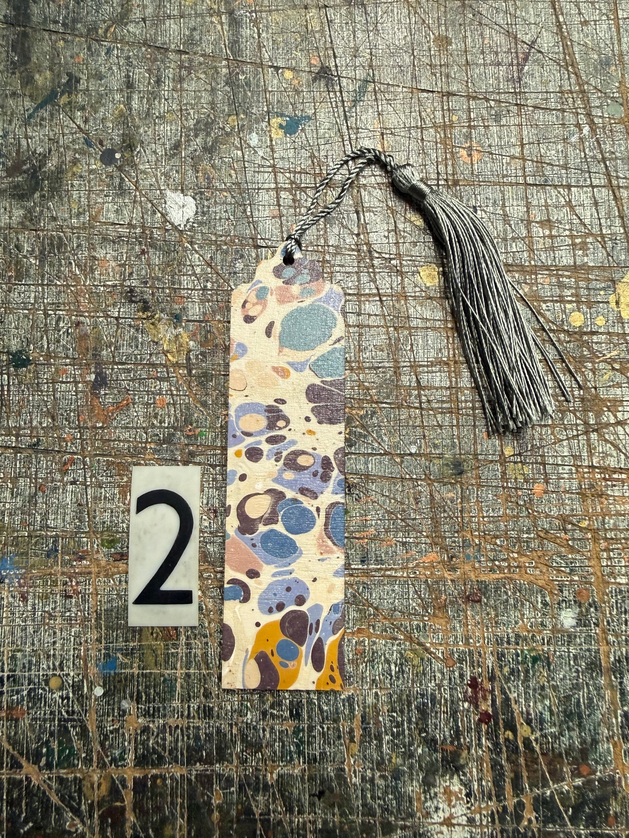 Small one-of-a-kind wooden hand marbled bookmark with tassel YOU CHOOSE