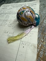 This bauble comes with a velvet ribbon, an ombre effect tassel and comes in its own brocade pouch as seen in the image/s.