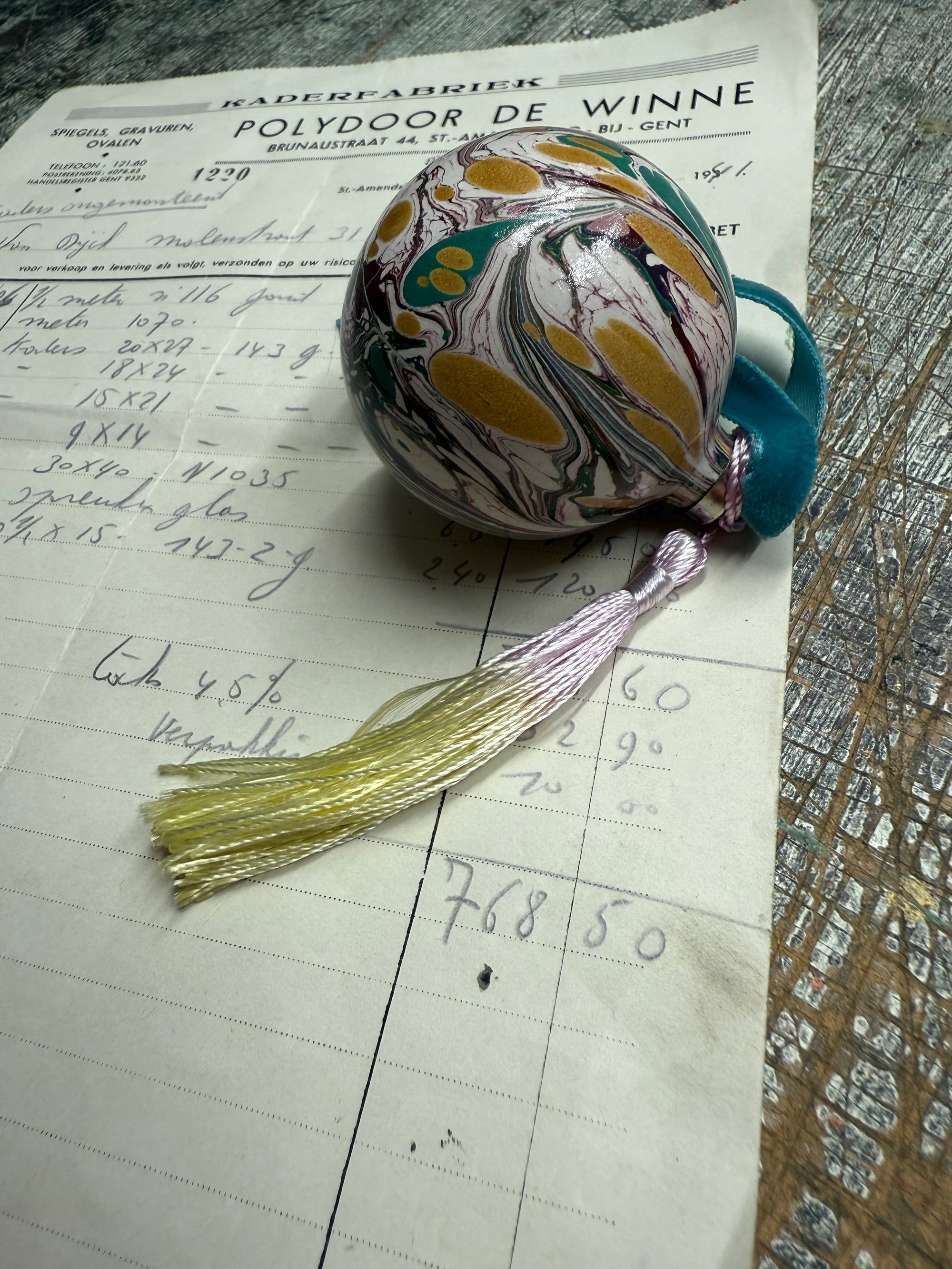 We are happy to add more ceramic baubles to our collection of unique one-of-a-kind pieces inspired by a recent trip to Charleston Farmhouse in August. The collection comprises of unique hand marbled papers, ceramic baubles and some other artisan items.