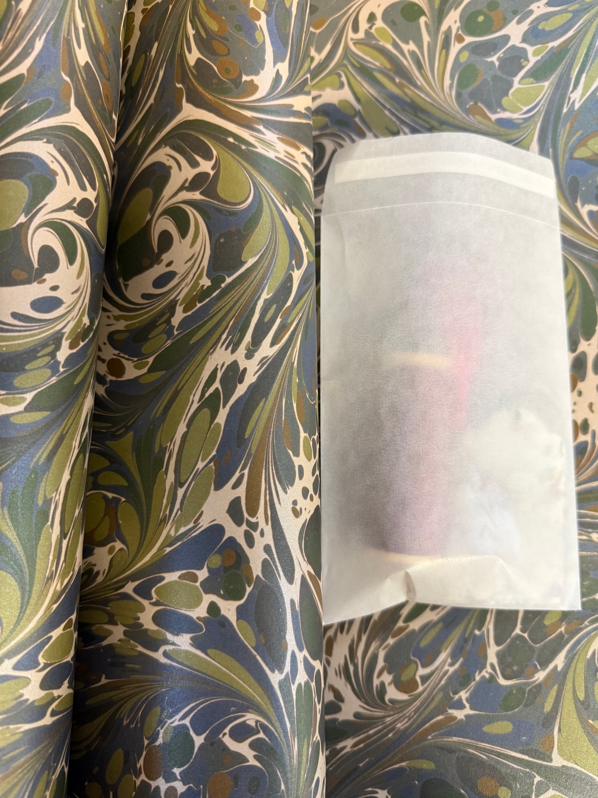 A gift wrapping bundle based around our pearlescent 'Twilight Swirl' printed marbled paper.