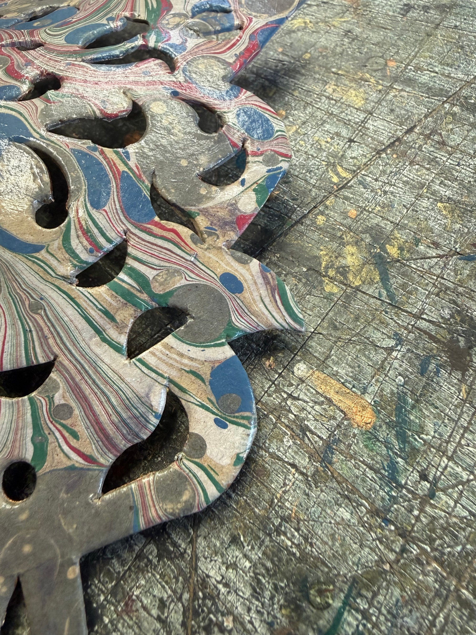 This charming and homespun marbled Venetian Papier-Mache mask has been hand marbled.
